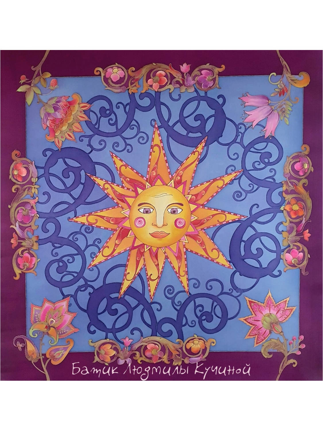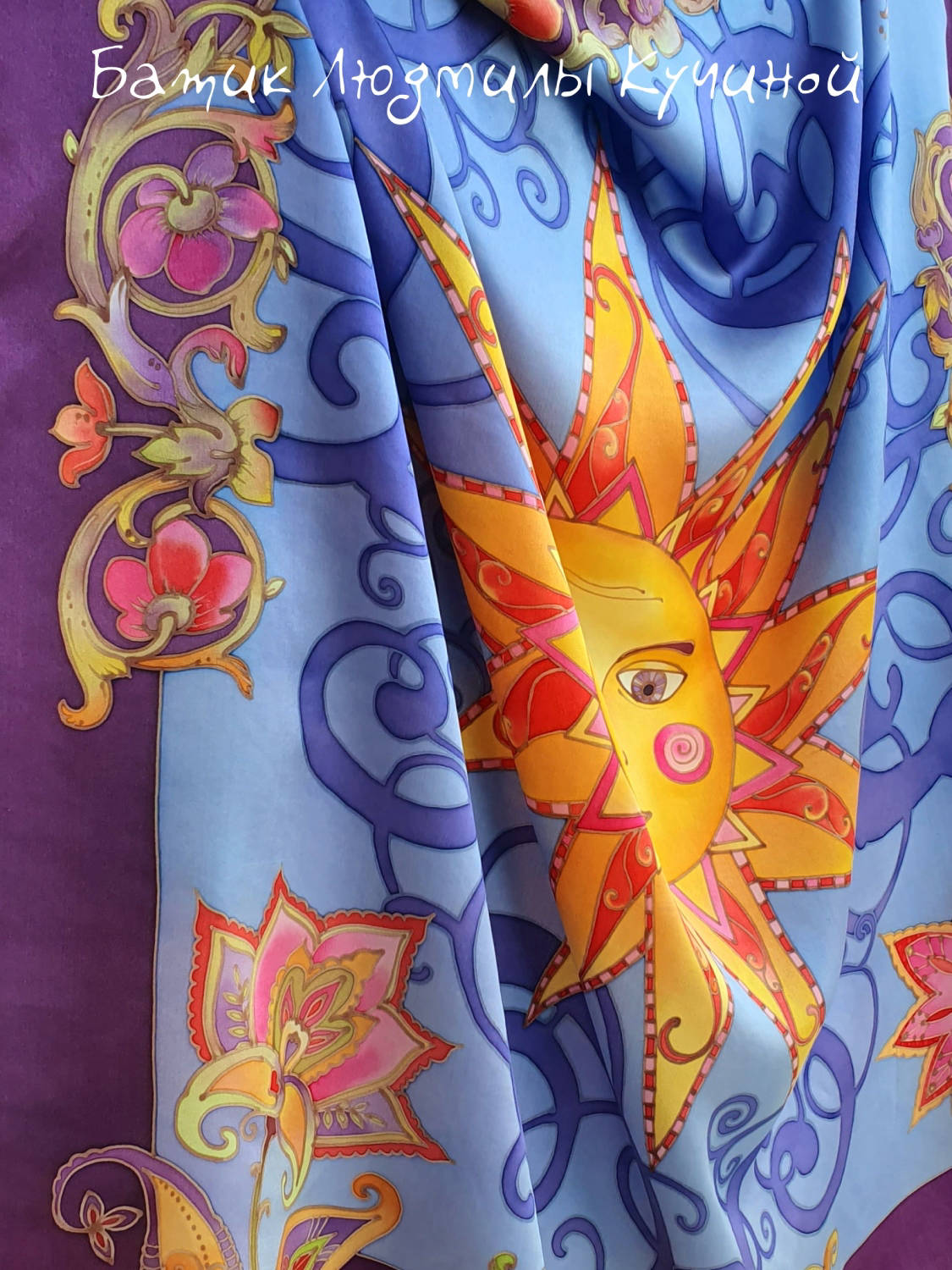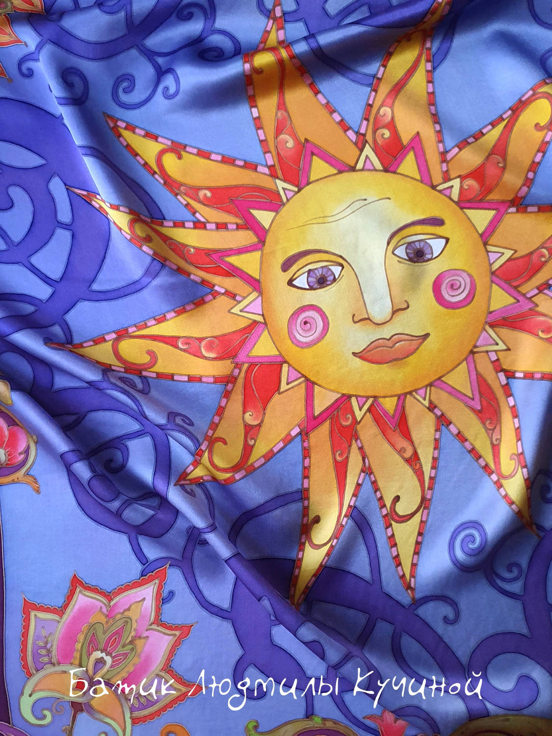 Батик платок "Ясно Солнышко" 90*90, натуральный шелк атлас. Цена 10500р.