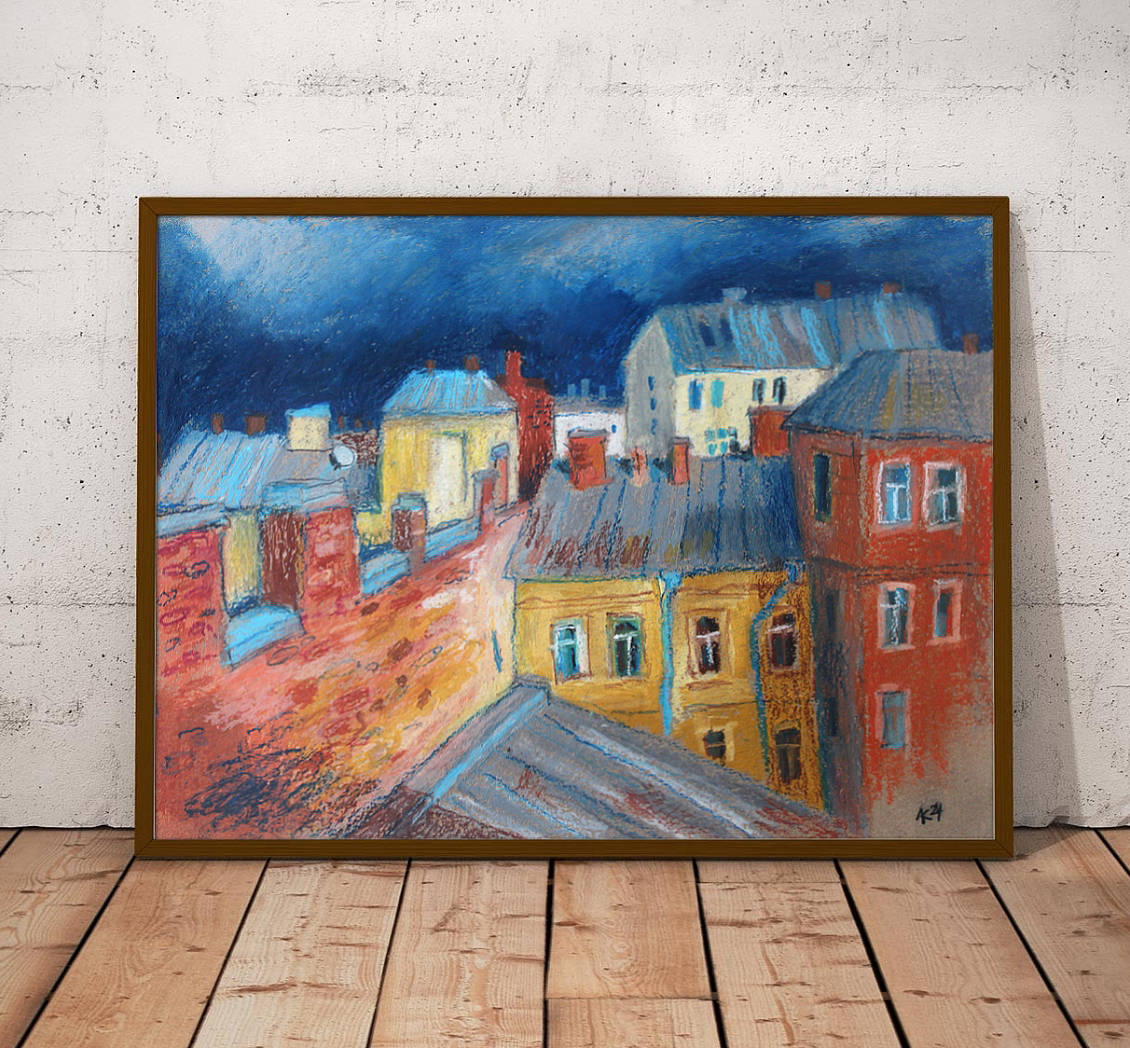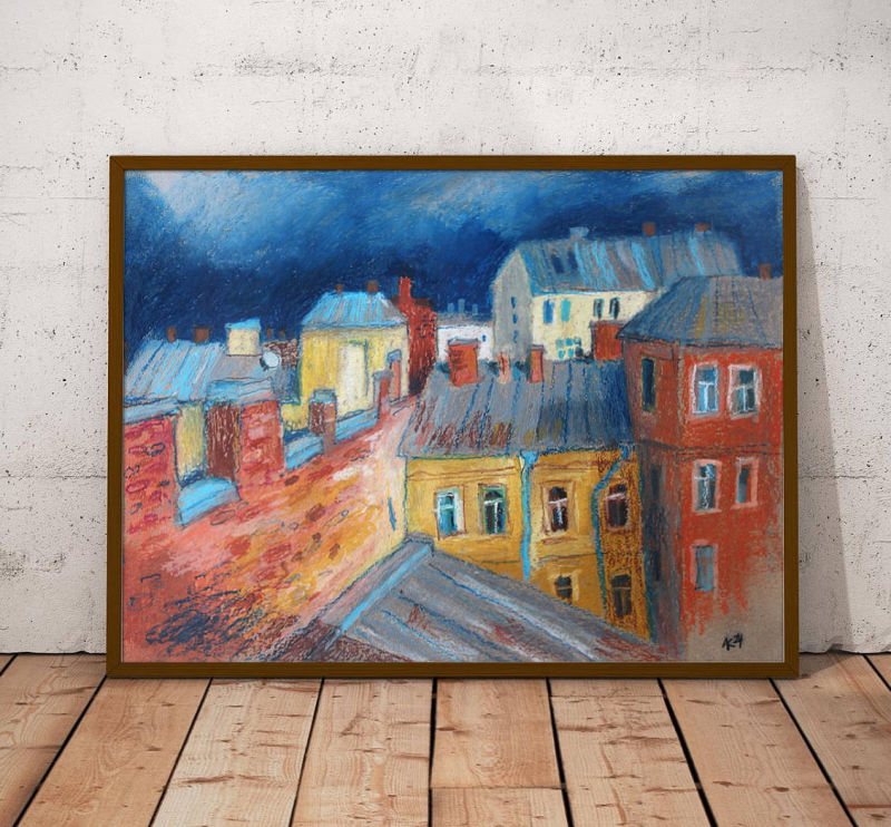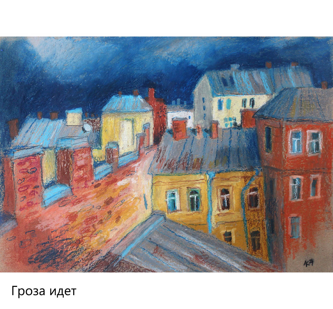 Размер A4. Масляная пастель на крафтовой бумаге. Цена 3900р