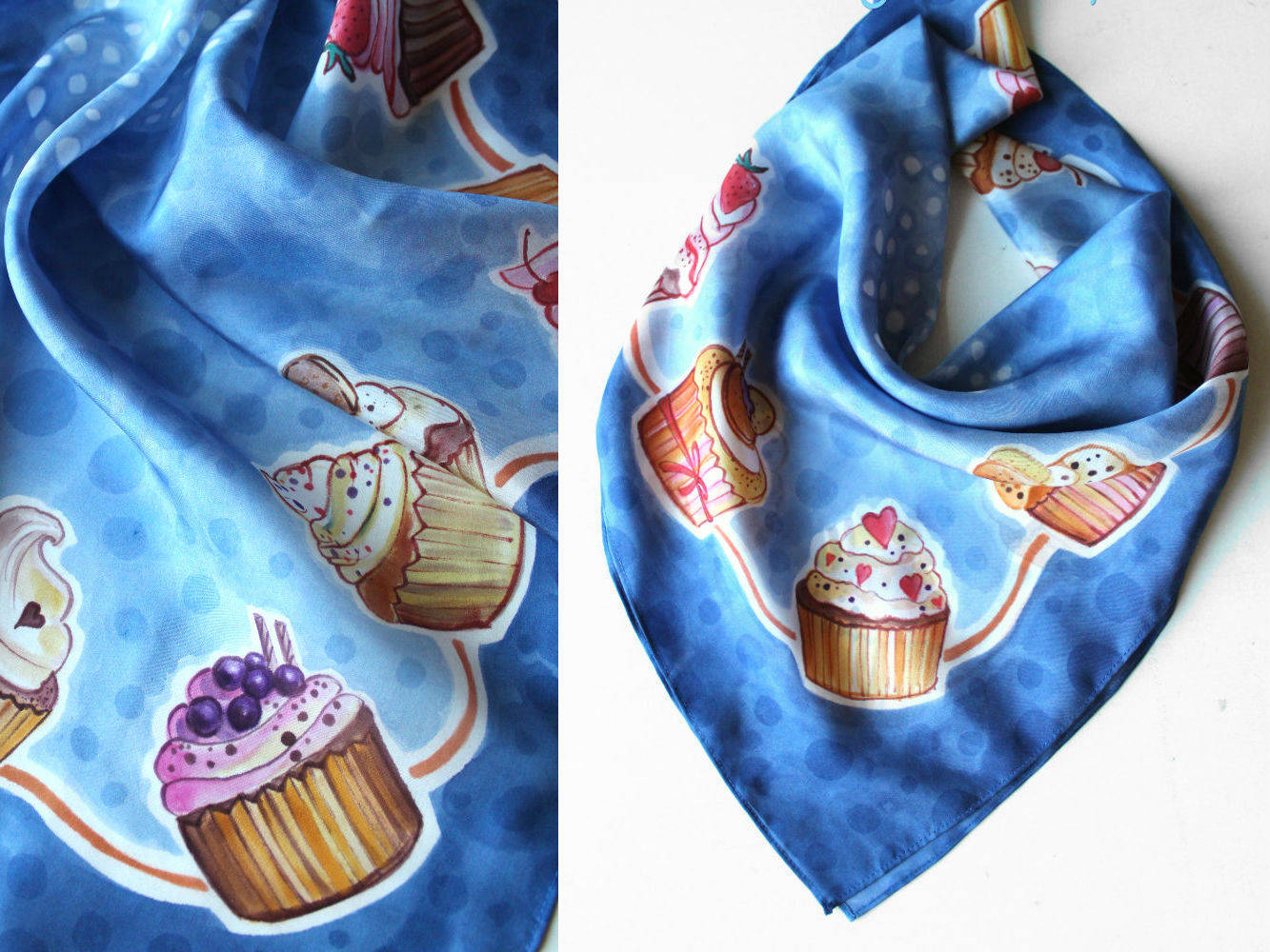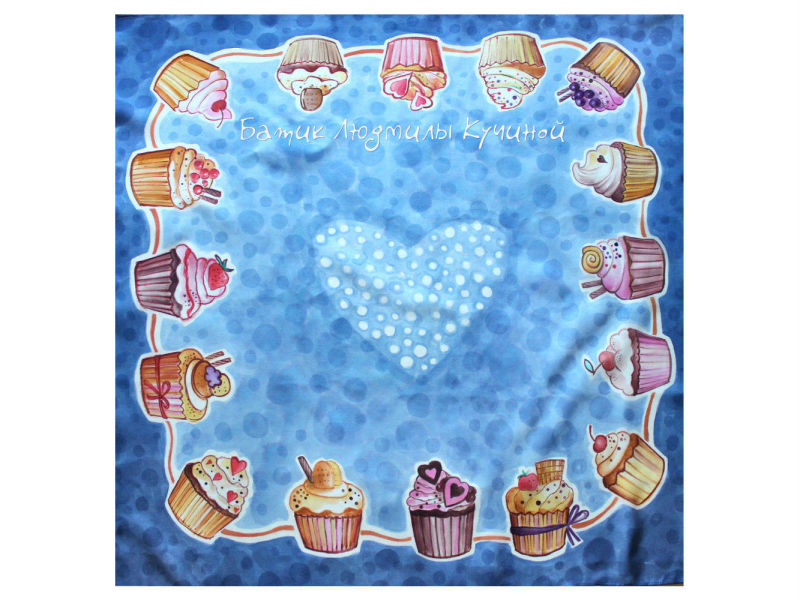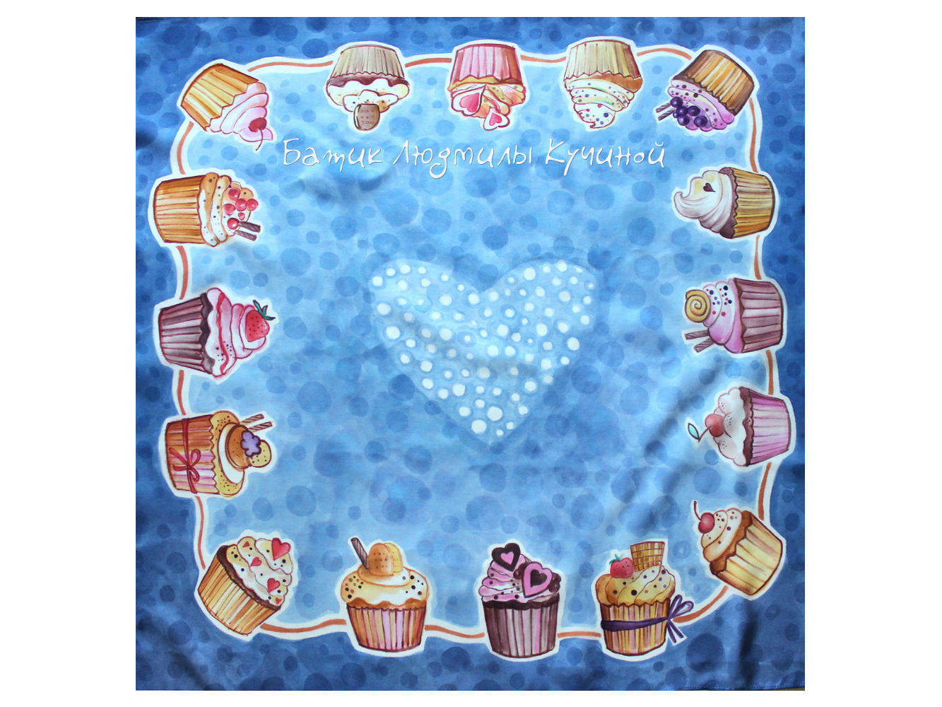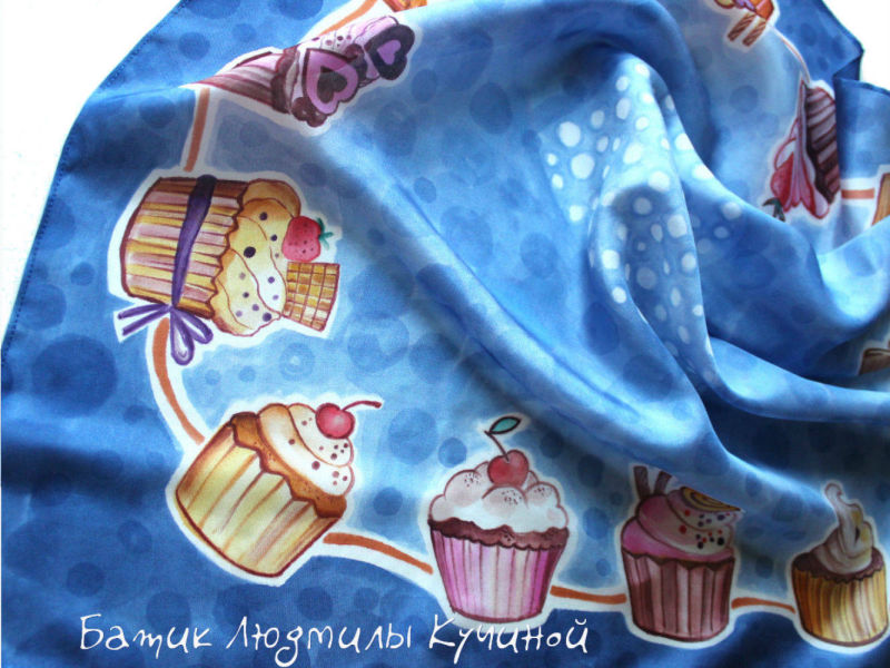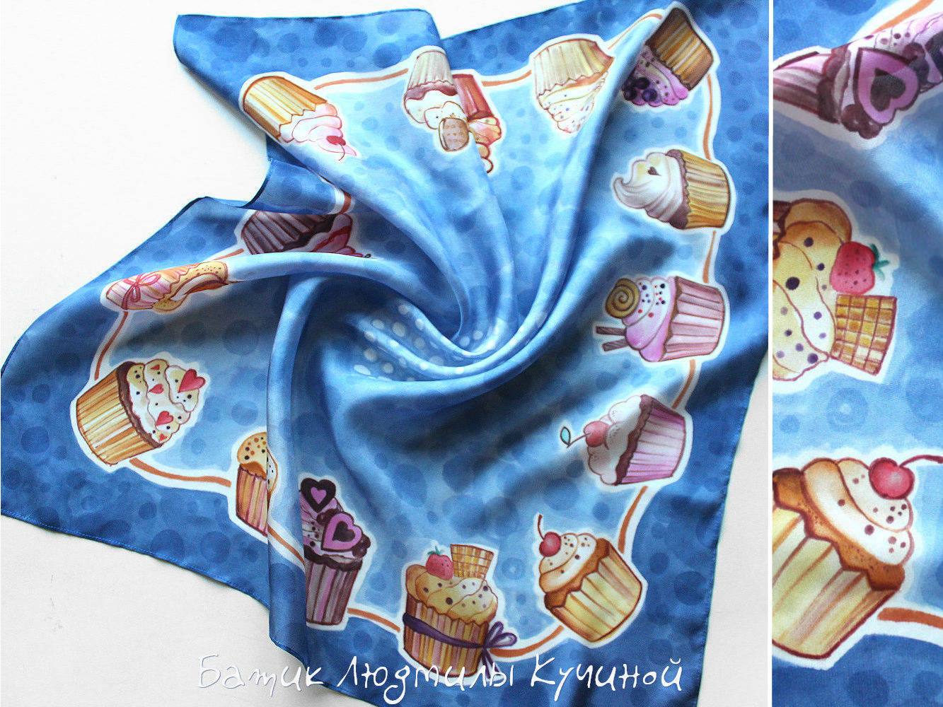 Батик платок "Сладкоежке" ок . 60*60см, натуральный шелк туаль. Свободная роспись. Повтор только по мотивам ))