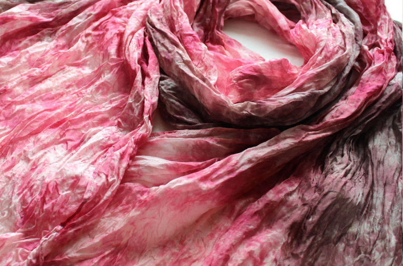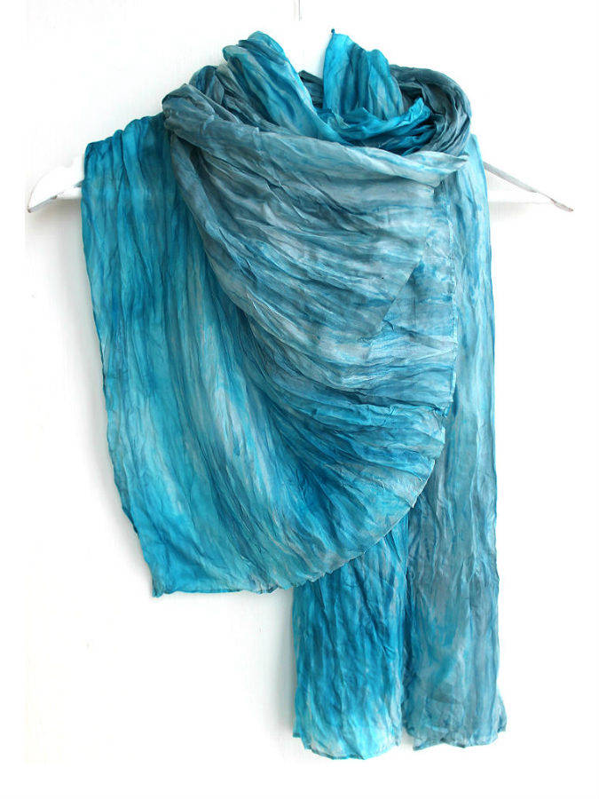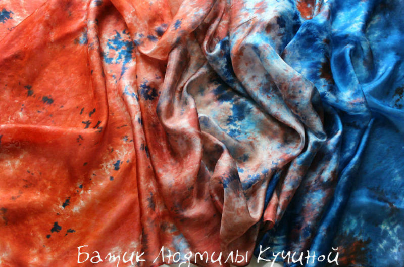 Разнообразные шарфики и платки, окрашенные техникой шибори. Выполнены на шелке туаль и тонком шелке эксцельсиор. Повторить такую окраску очень сложно, но можно сделать похоже.