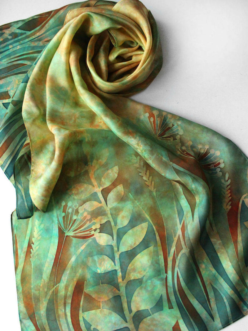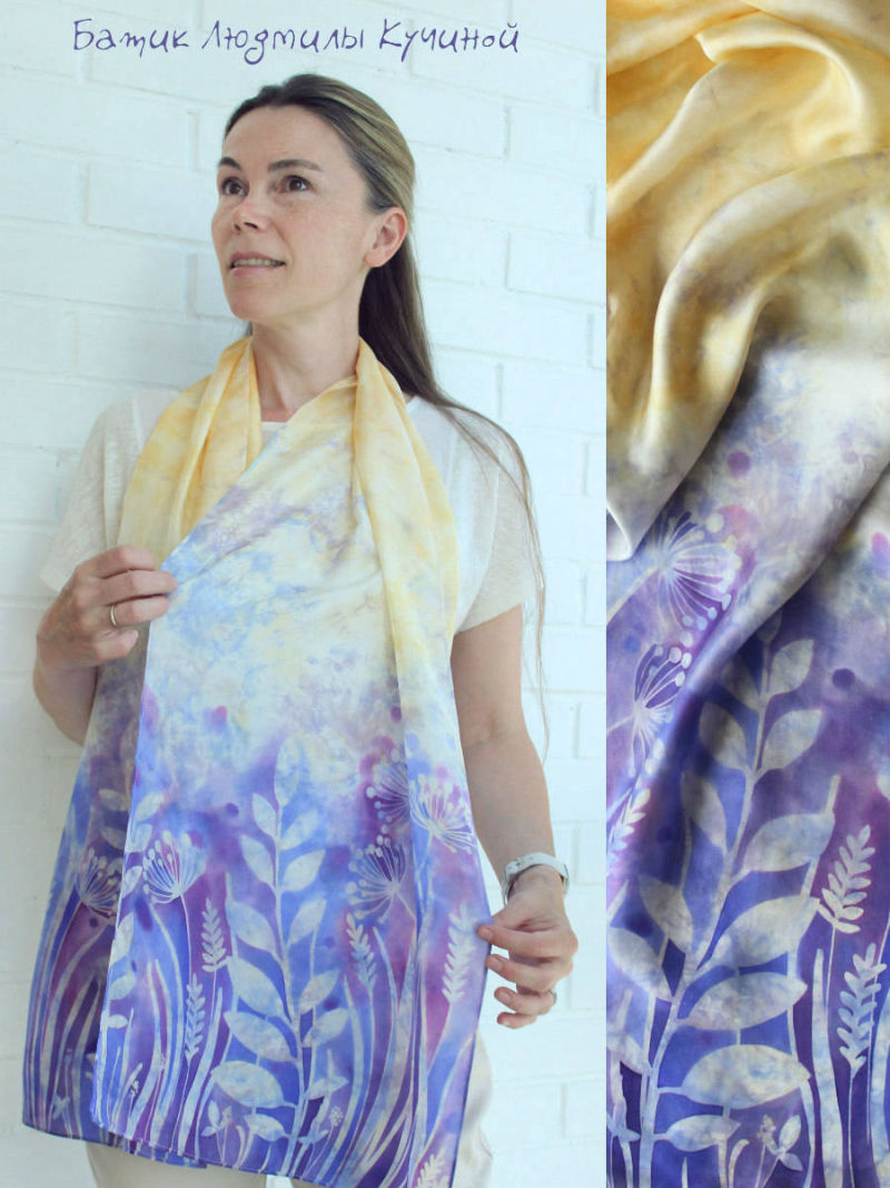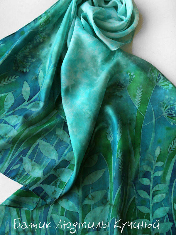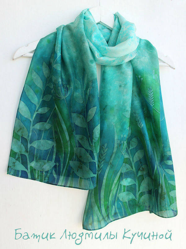 Батик шарф "Травы" 177*42см, натуральный шелк туаль. Разные расцветки. Повтор по мотивам возможен.