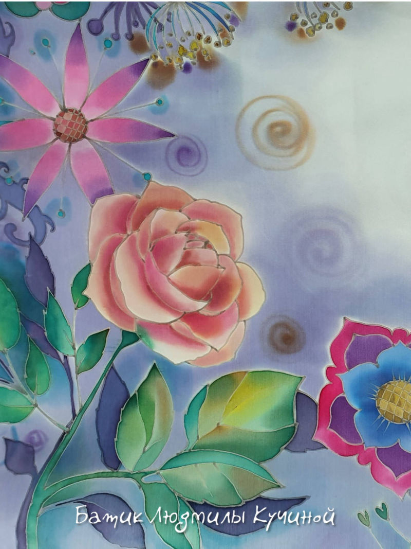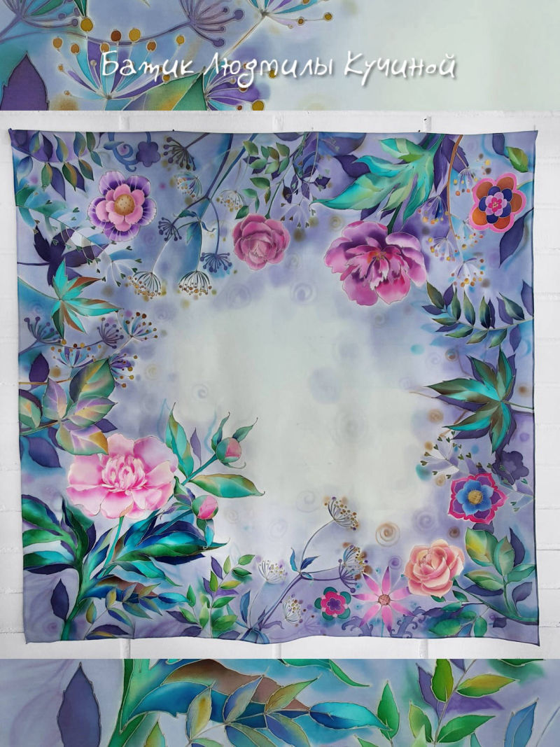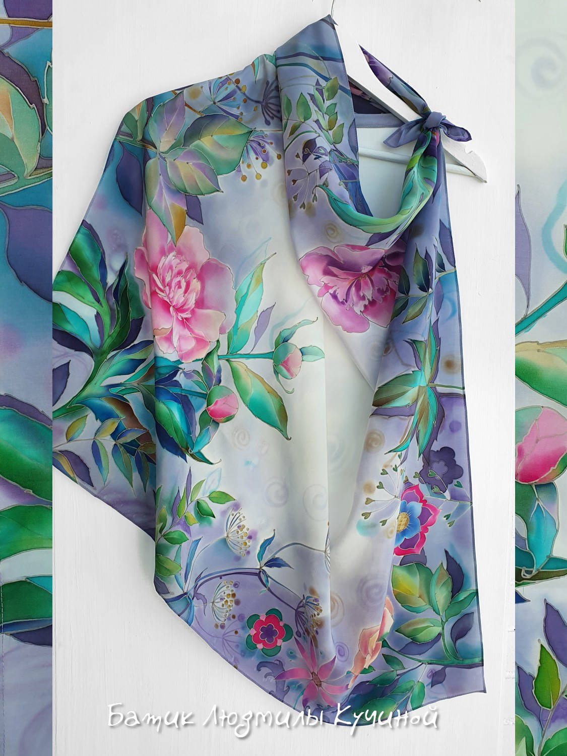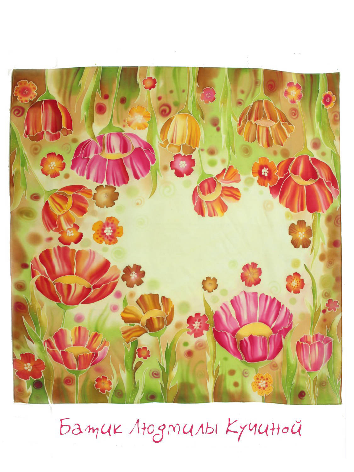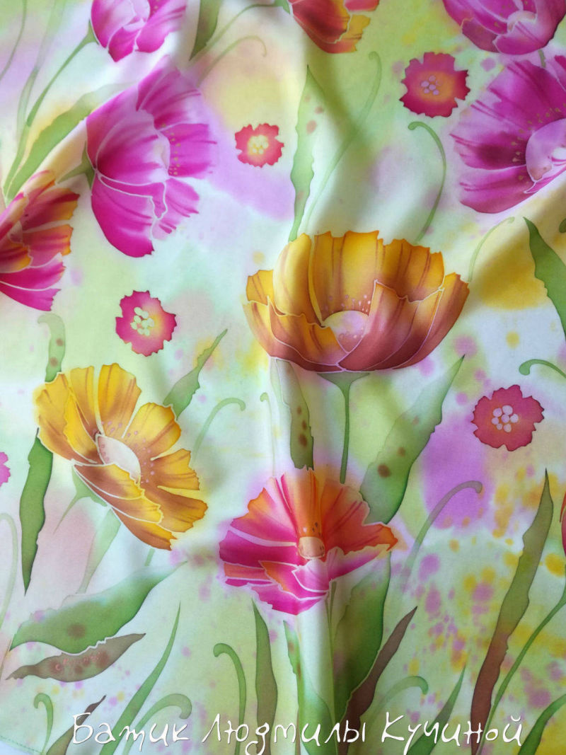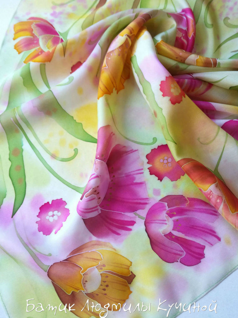 Батик платок "Весенние цветы" , натуральный шелк туаль, разные размеры. Повтор возможен по мотивам.