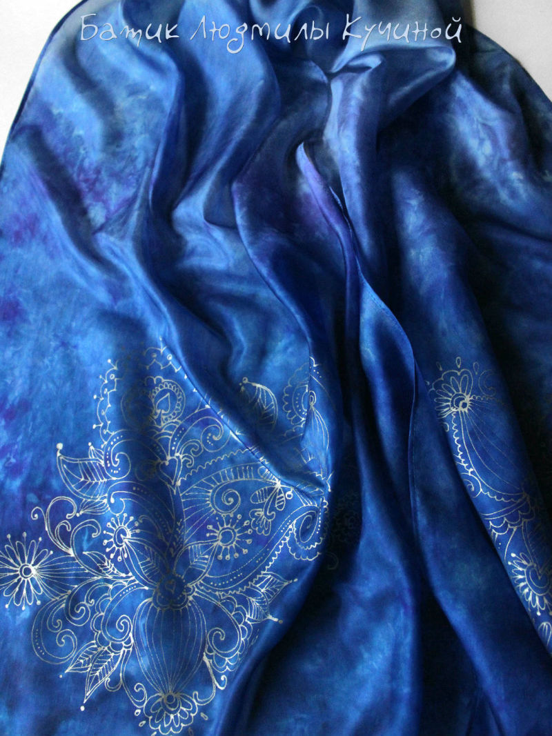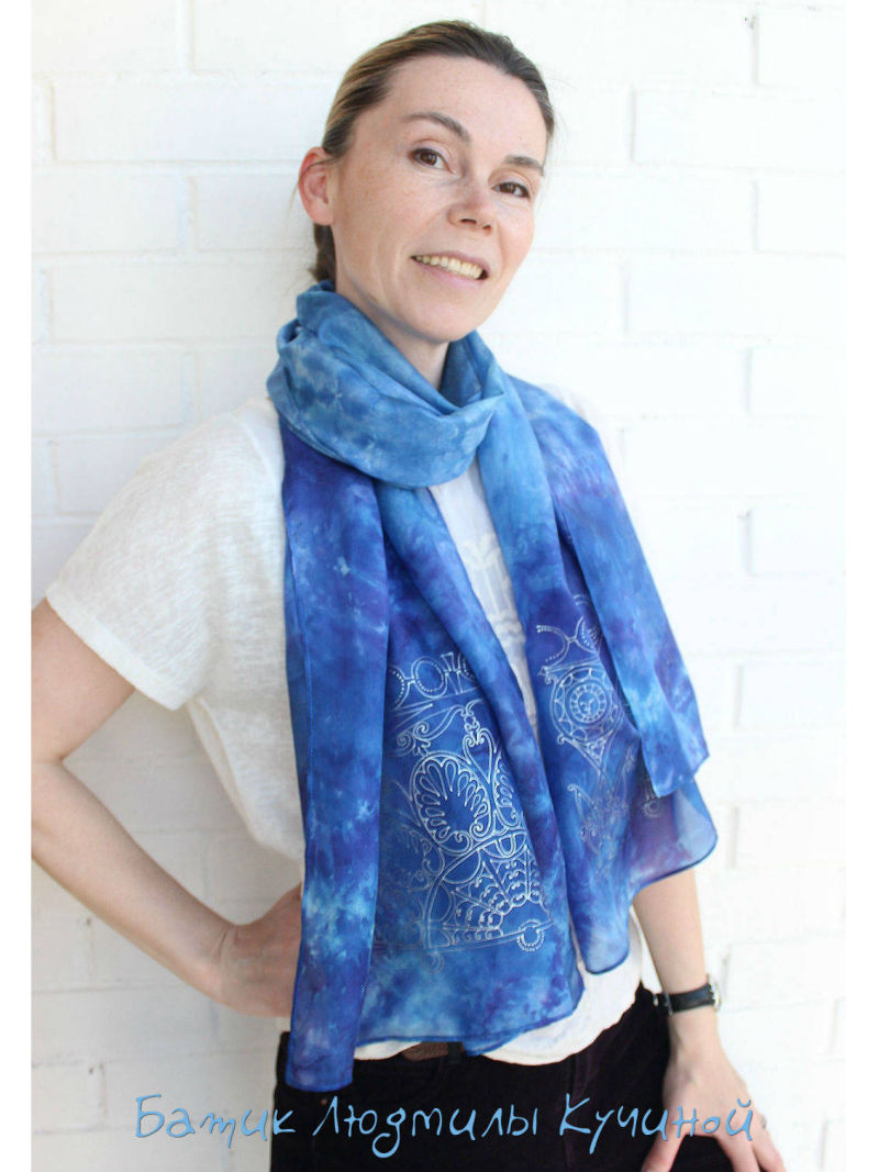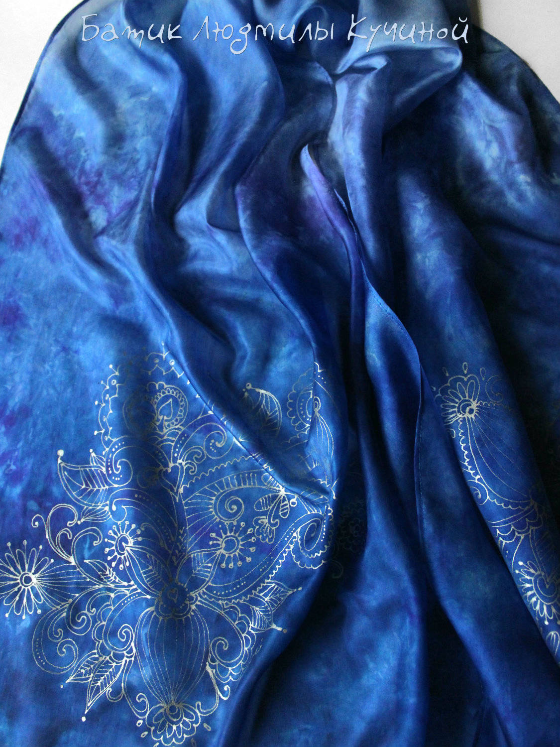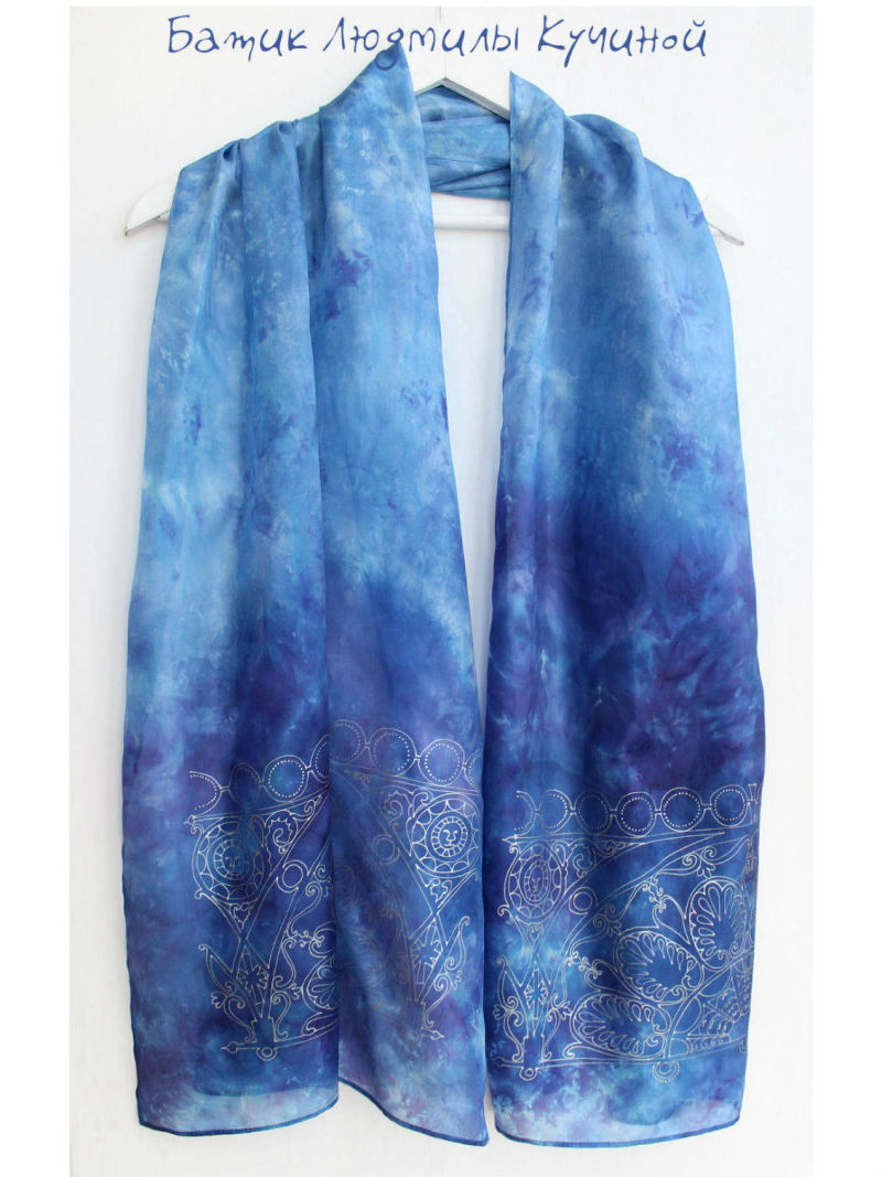 Батик шарф "Синий Петербург" разные размеры, разные виды шелка, холодный батик. Повтор возможен.