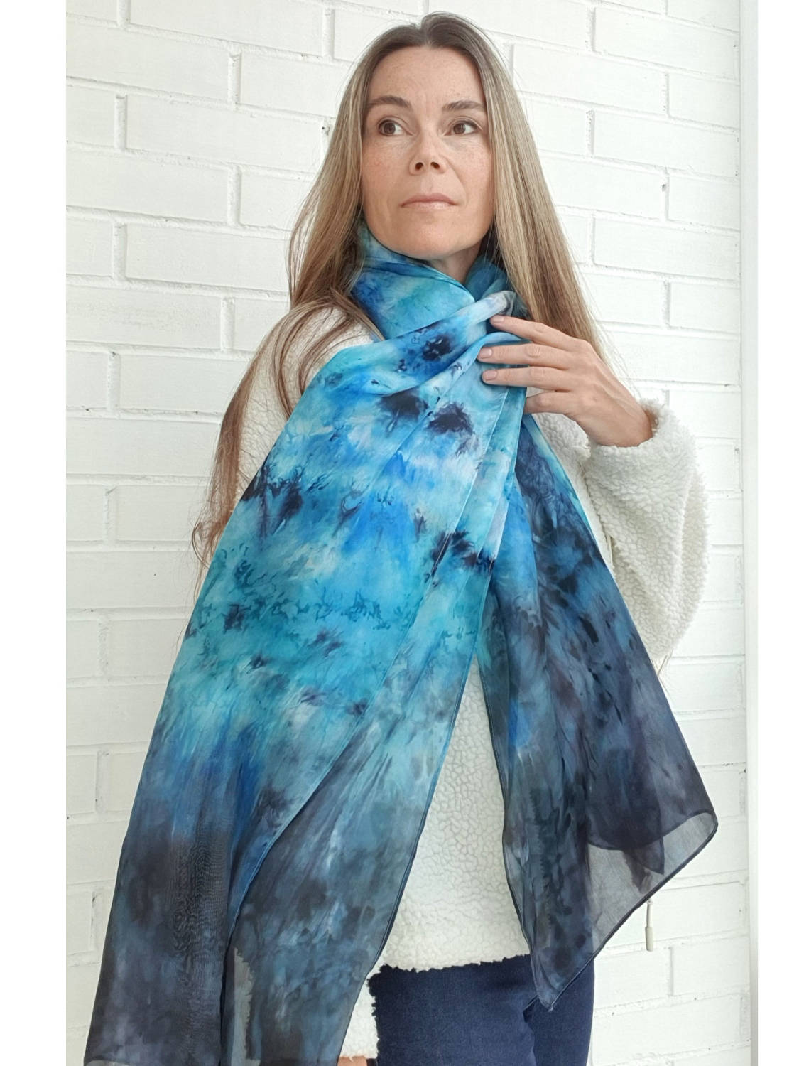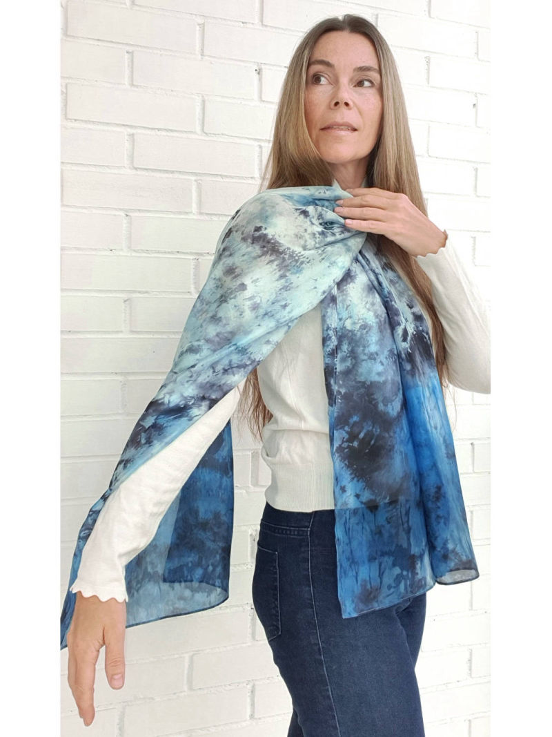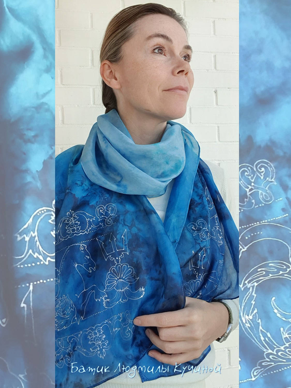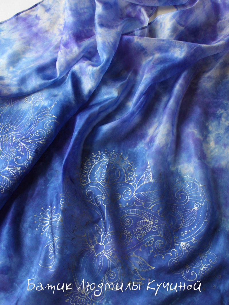 Батик шарф "Синий Петербург" разные размеры, разные виды шелка, холодный батик. Повтор возможен.