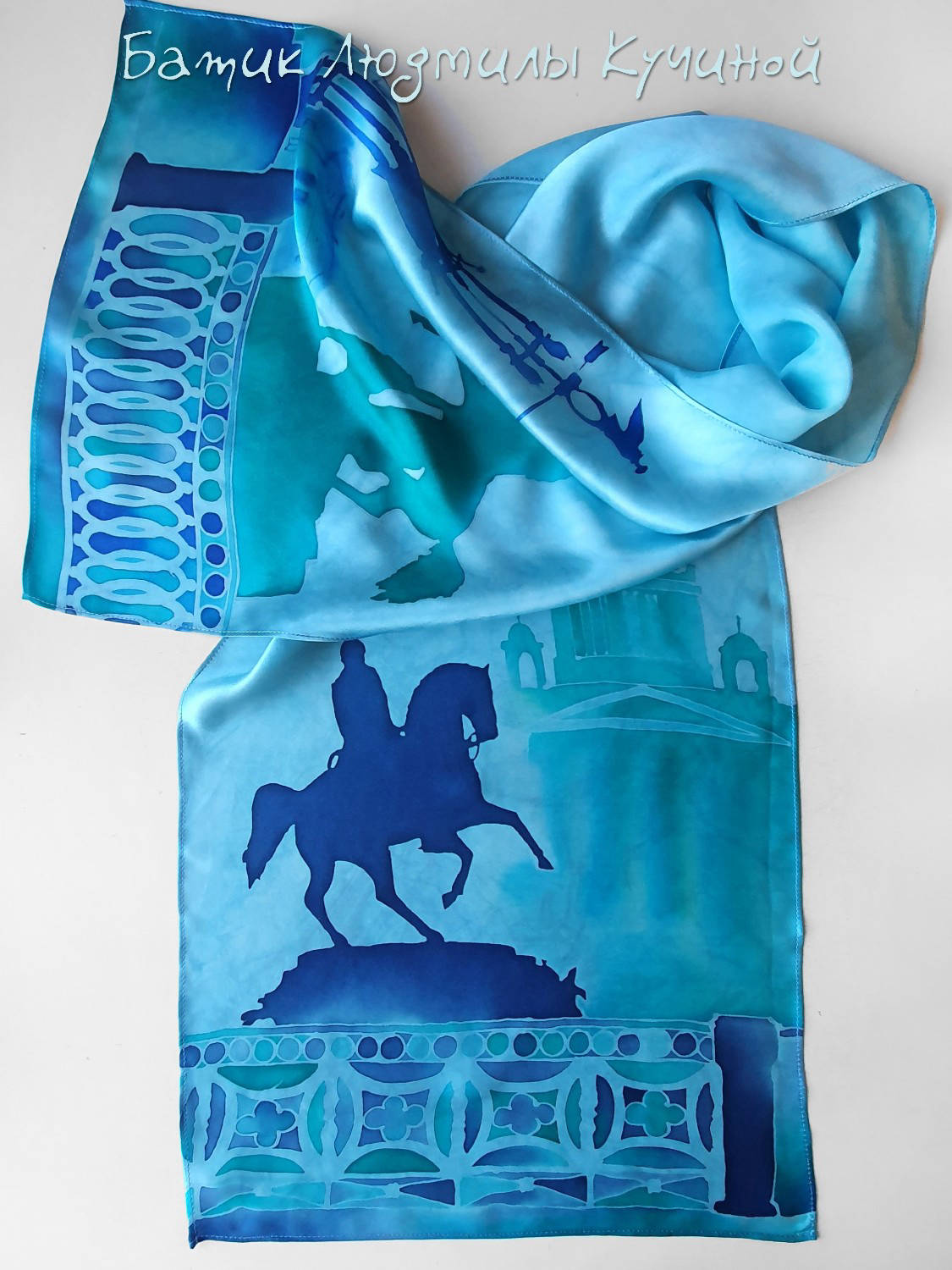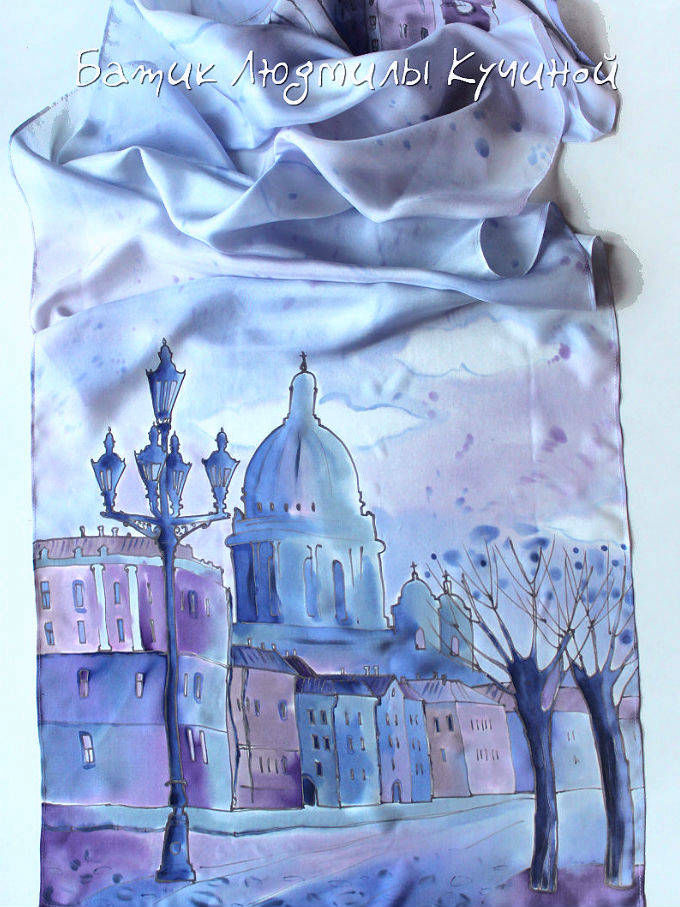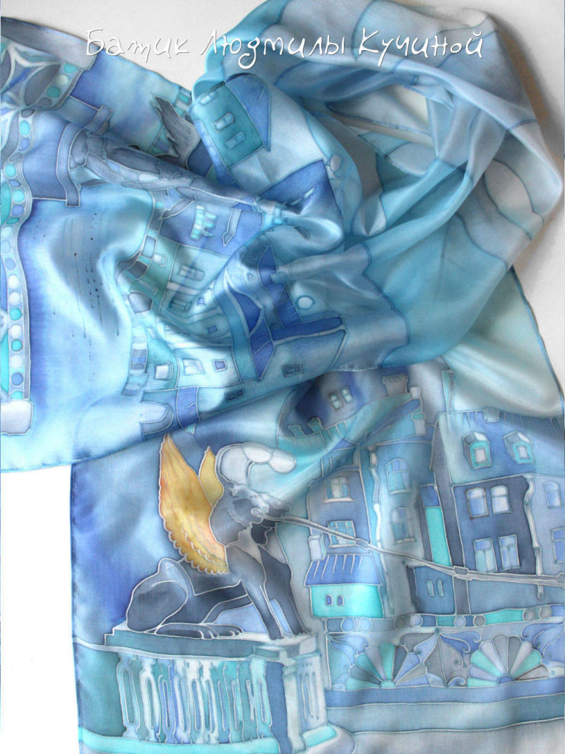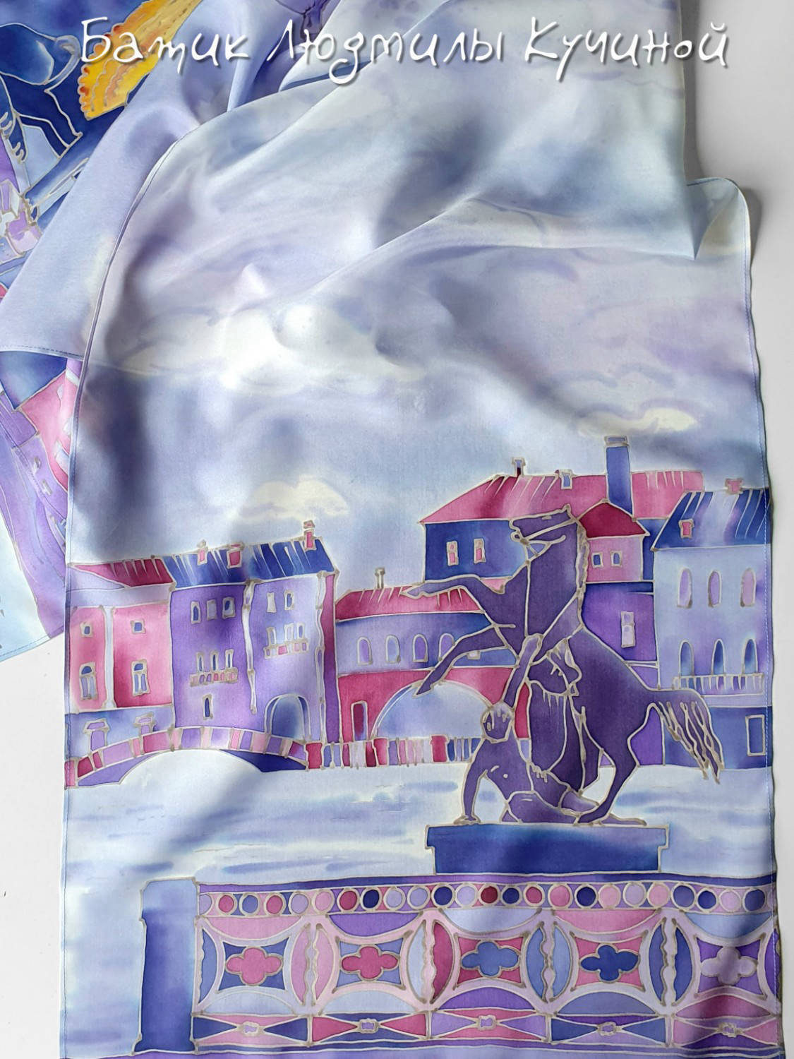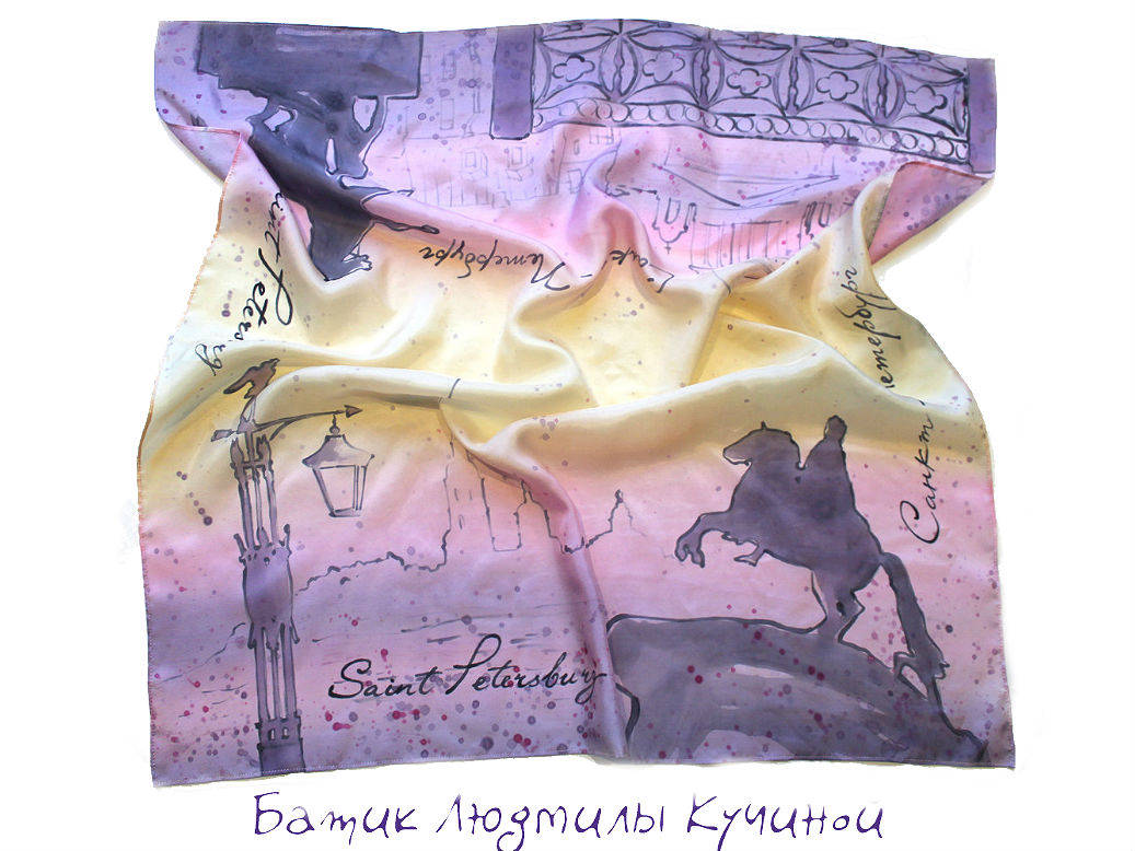 Батик шарф "Поездка в Петербург" разные размеры и цвета , натуральный шелк туаль или атлас. Повтор возможен по мотивам.