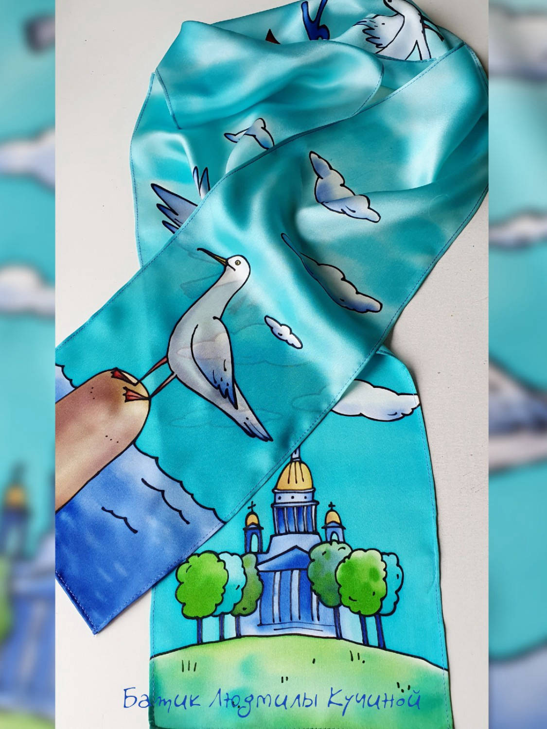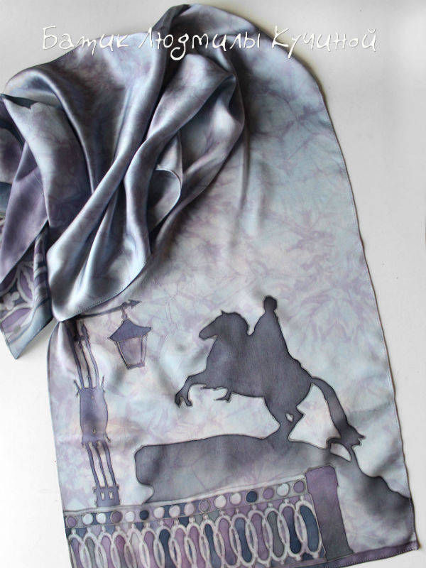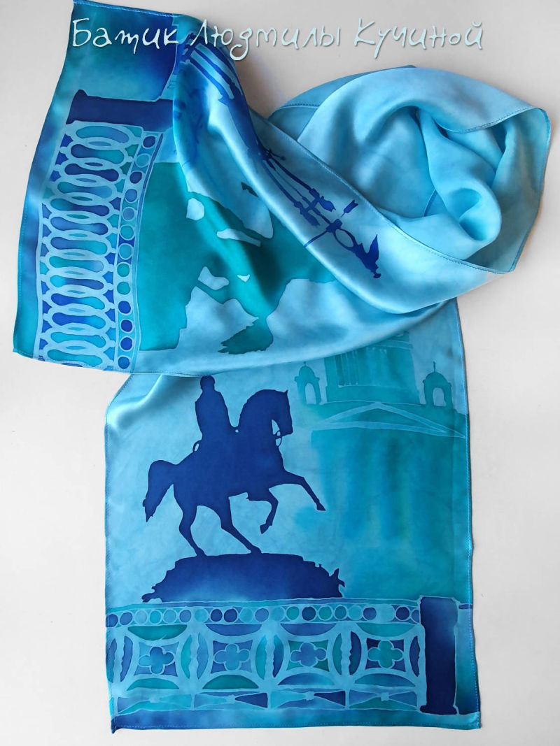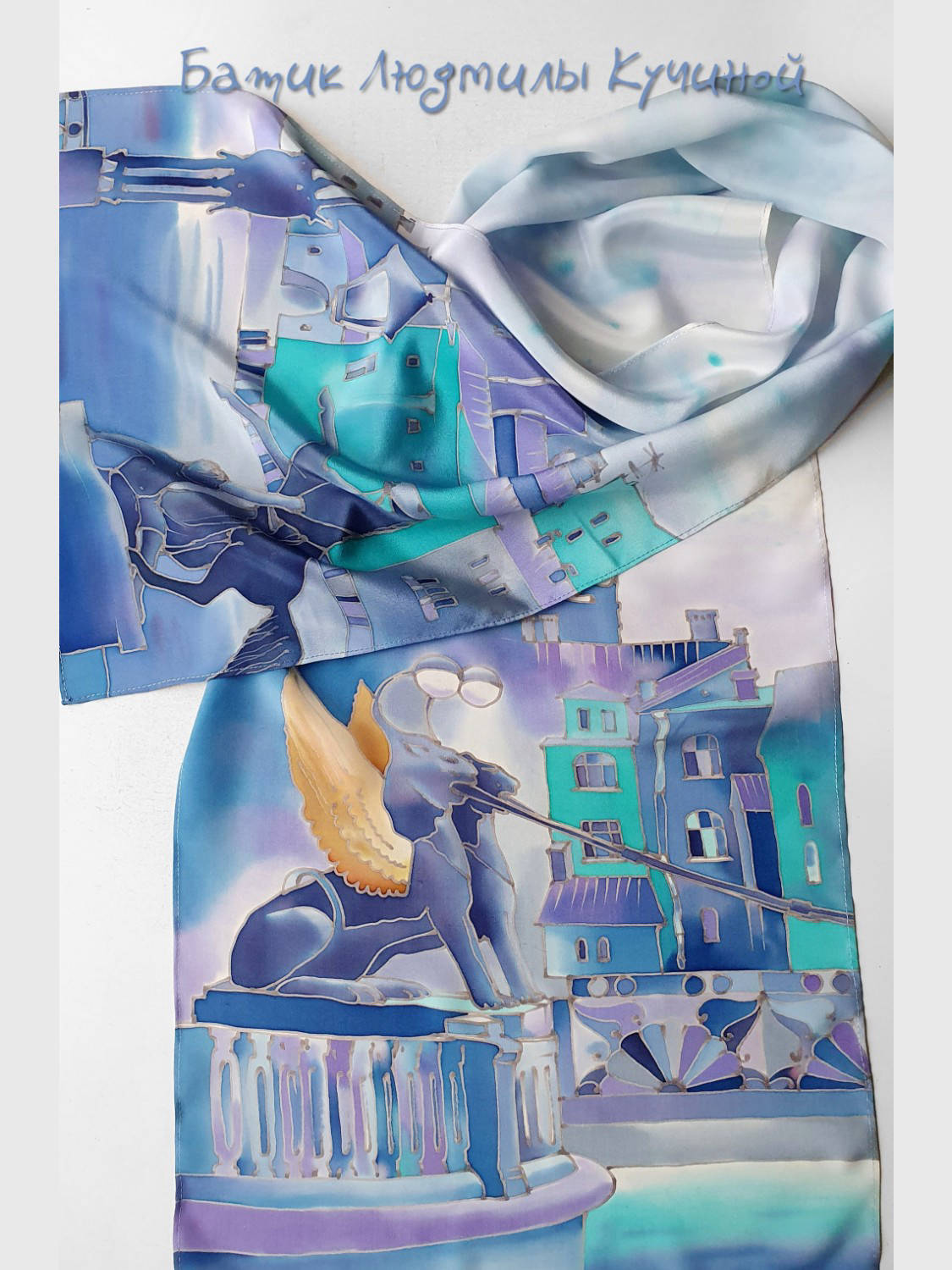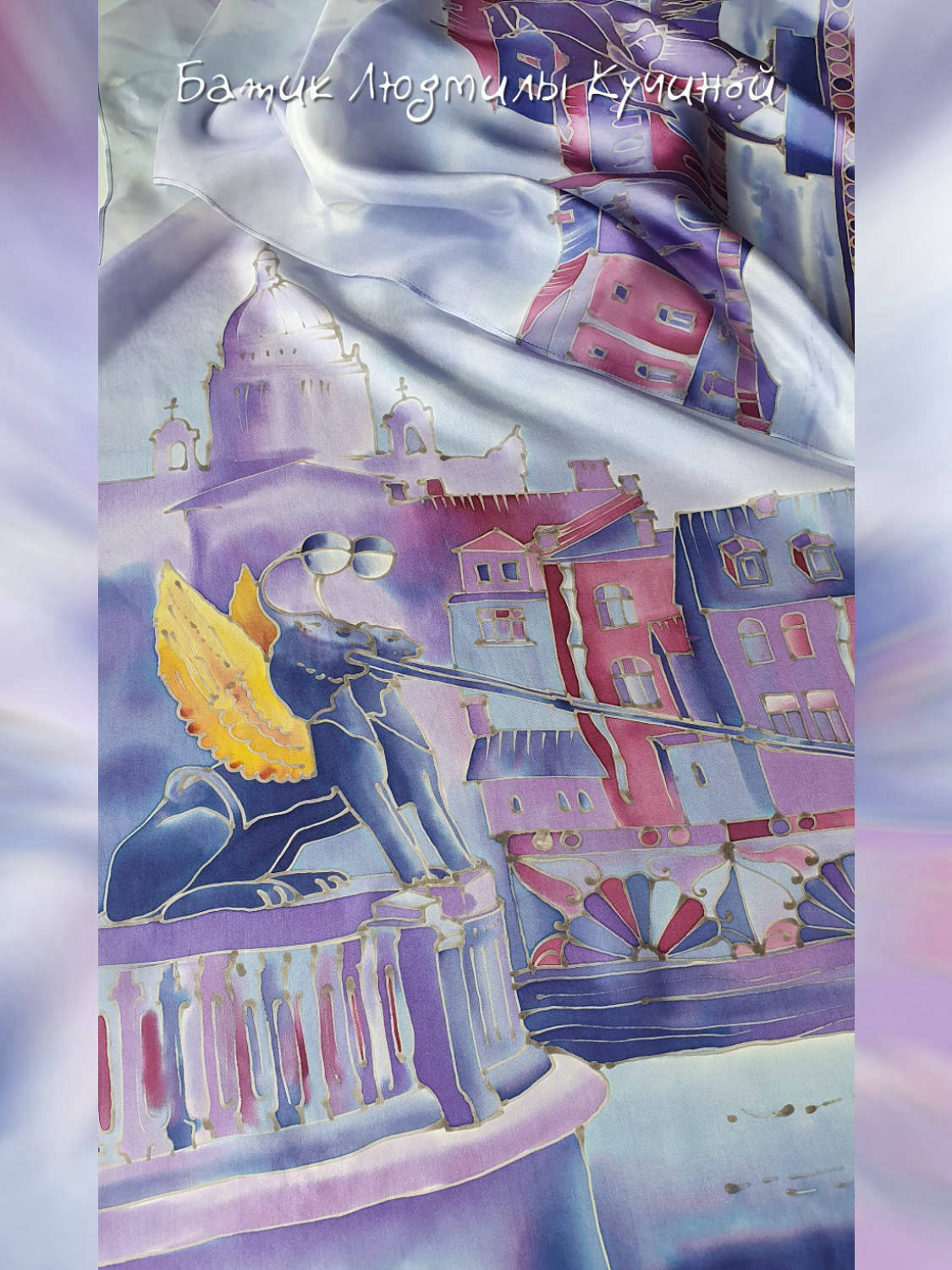 Батик шарф "Поездка в Петербург" разные размеры и цвета , натуральный шелк туаль или атлас. Повтор возможен по мотивам.
