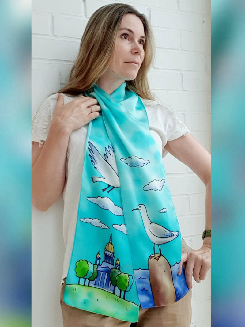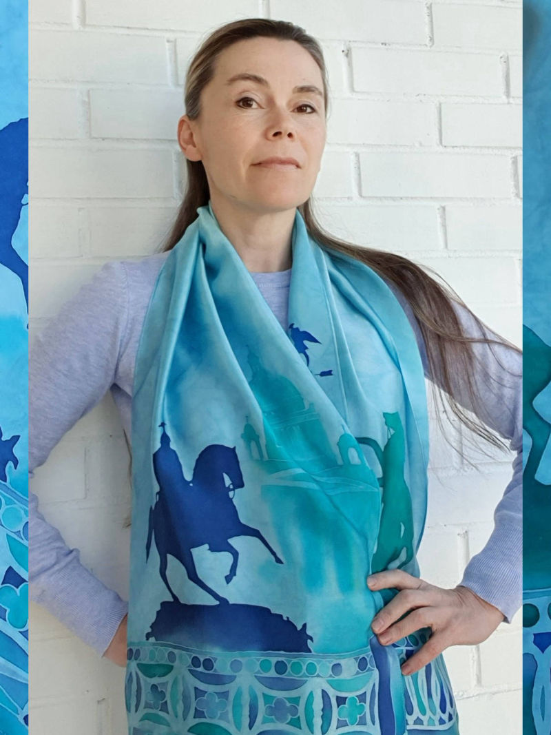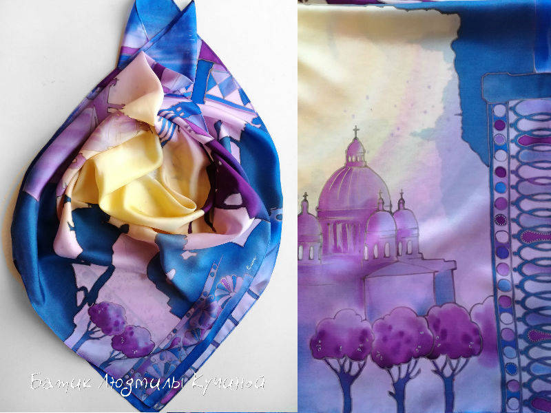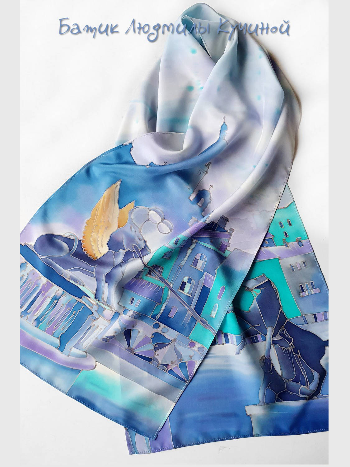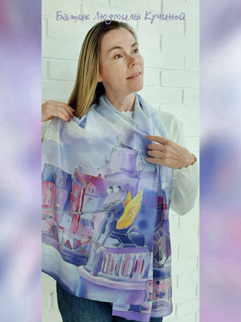 Батик шарф "Поездка в Петербург" разные размеры и цвета , натуральный шелк туаль или атлас. Повтор возможен по мотивам.