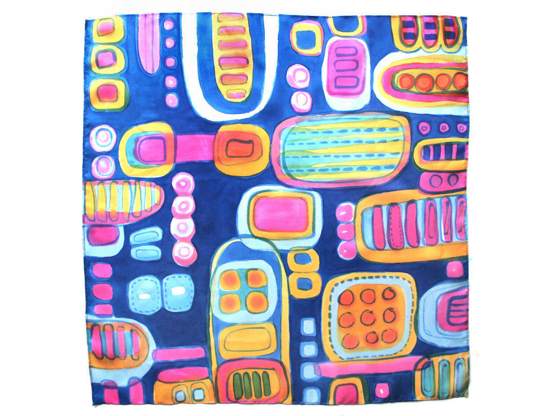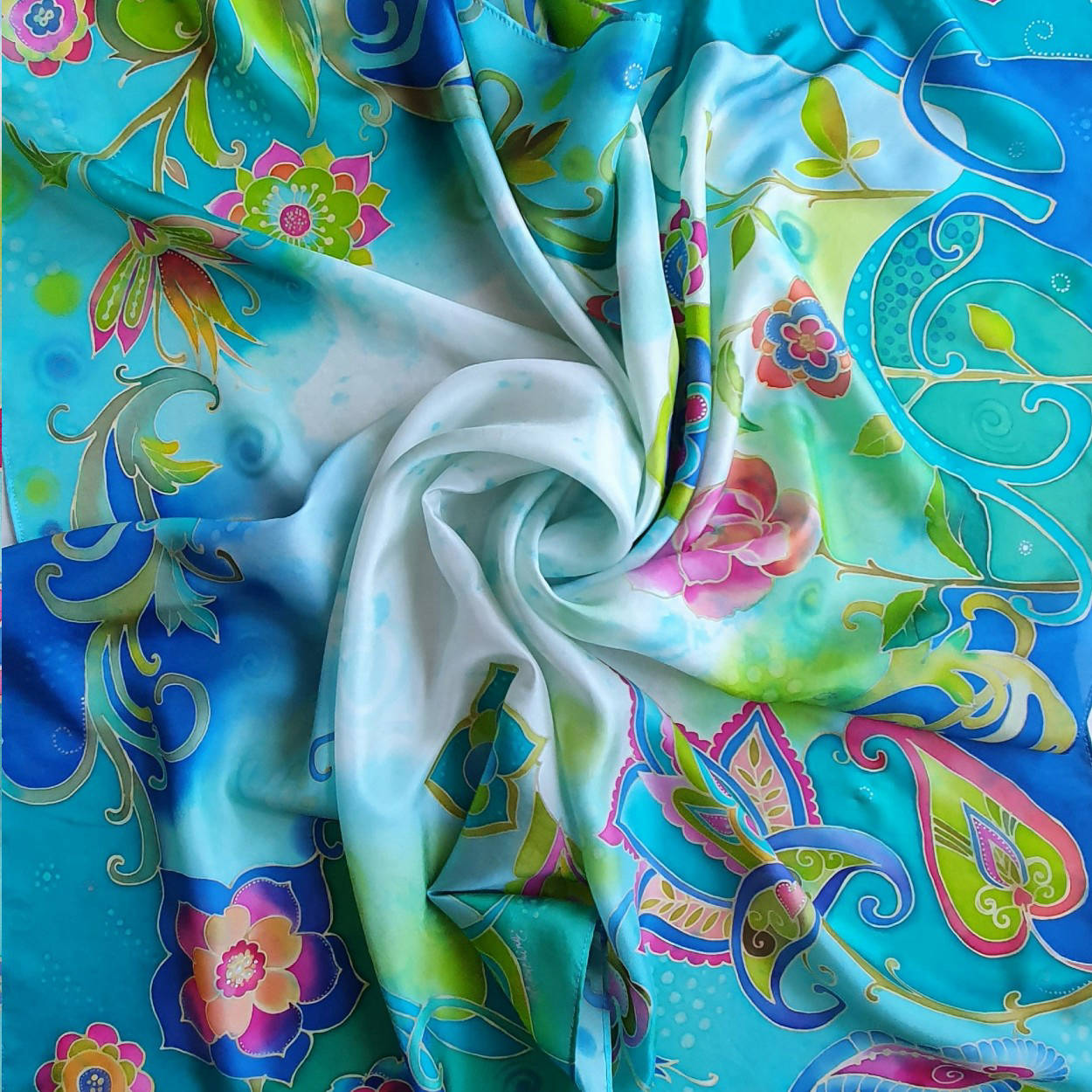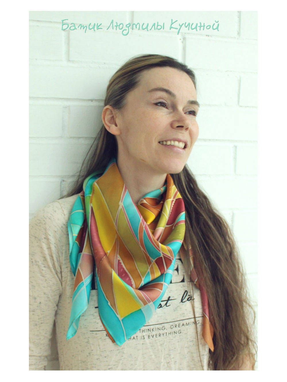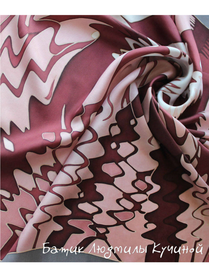 Батик шарф "Абстракция на тему" 90*90см, натуральный шелк туаль, свободная роспись. Повтор возможен.