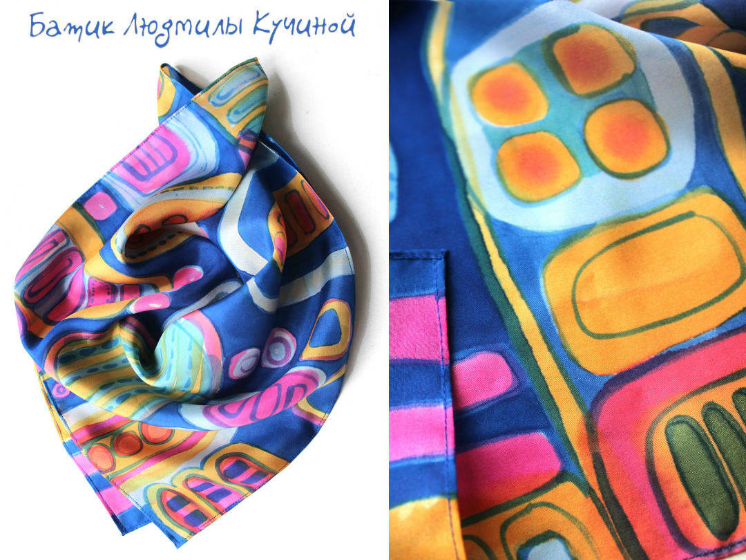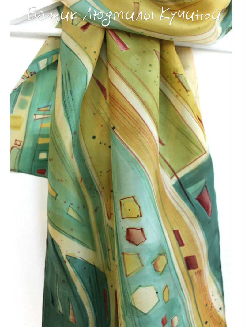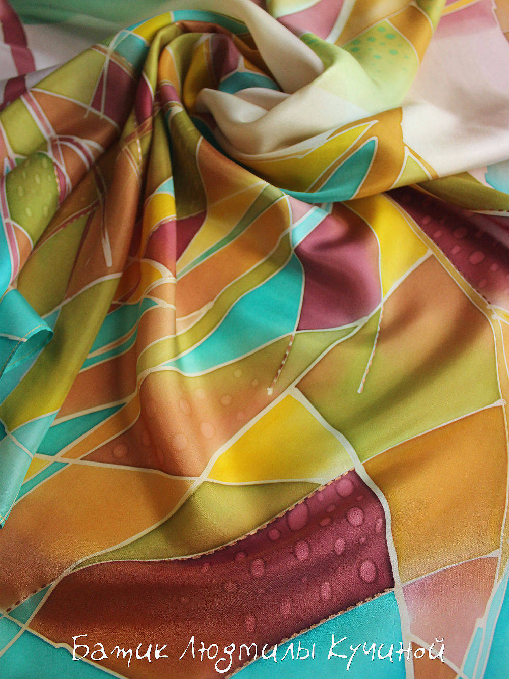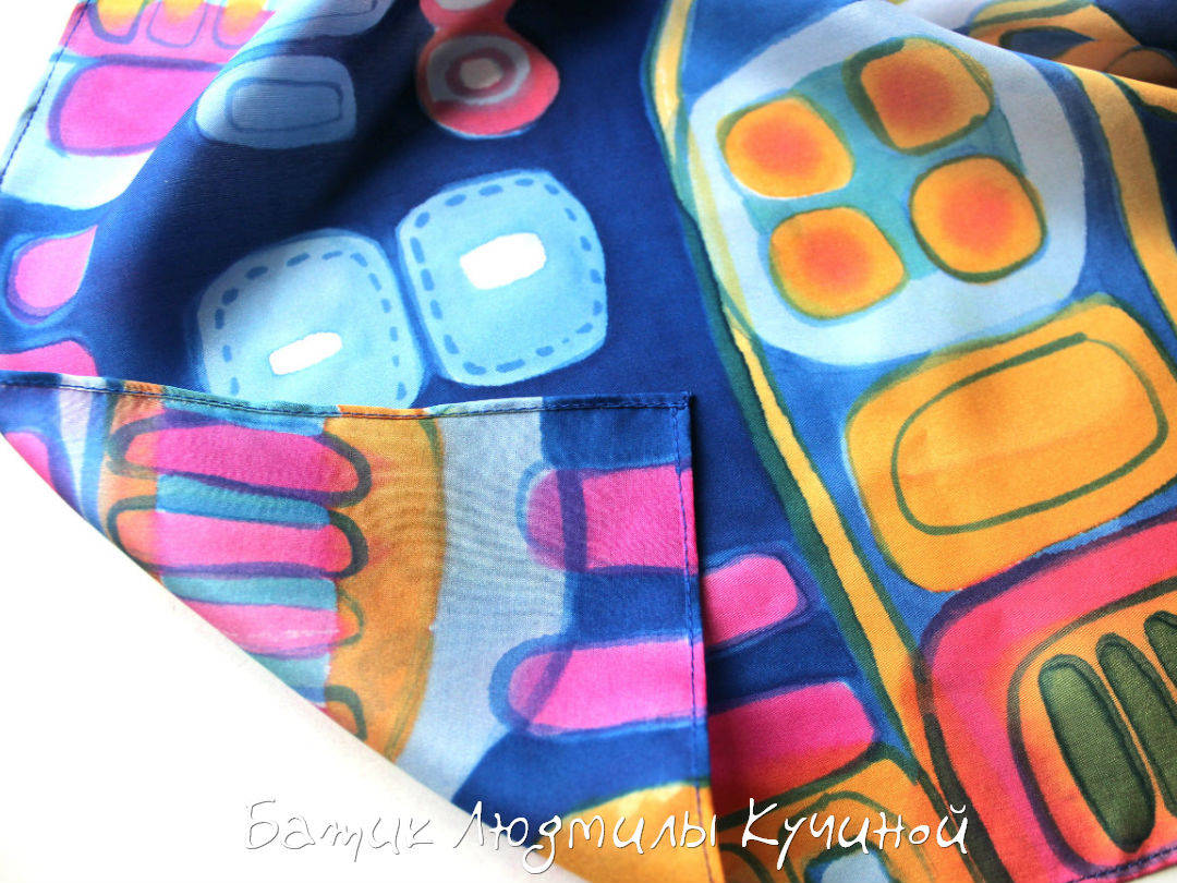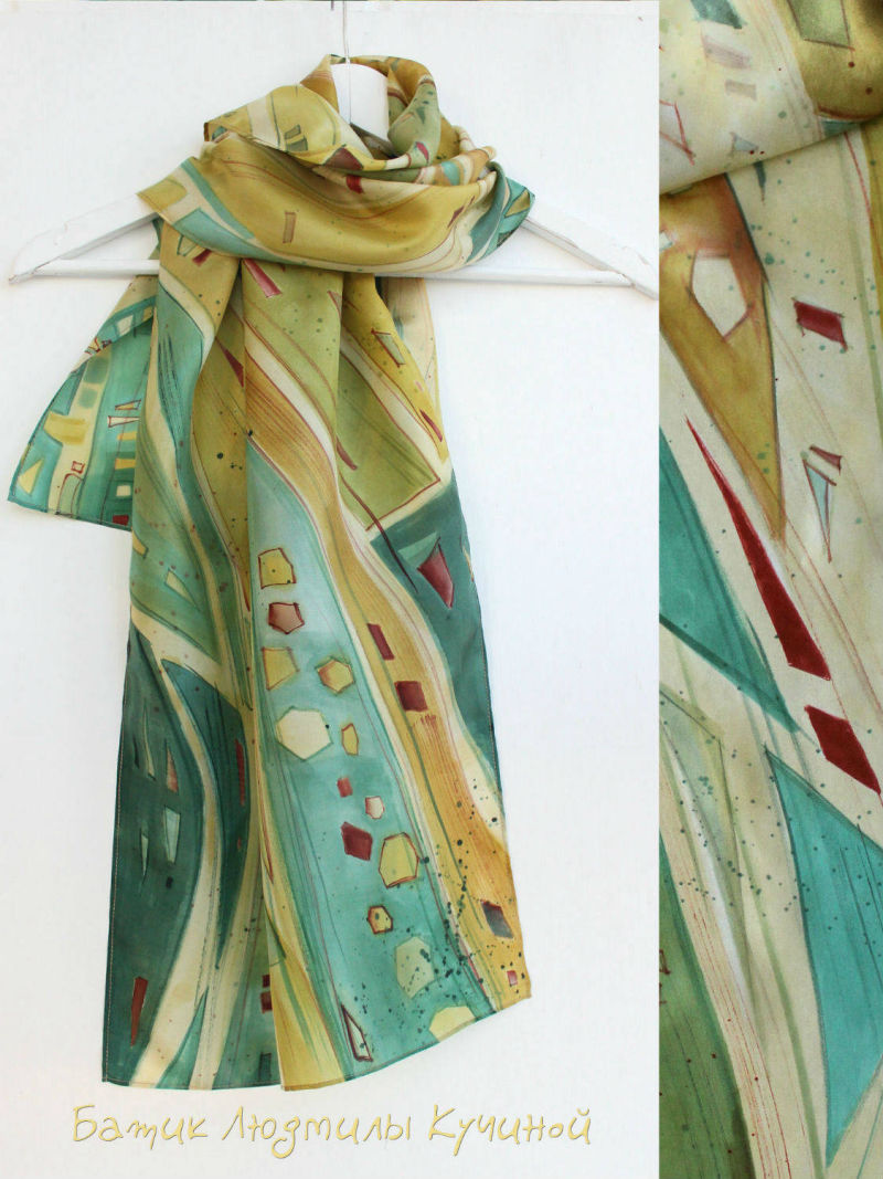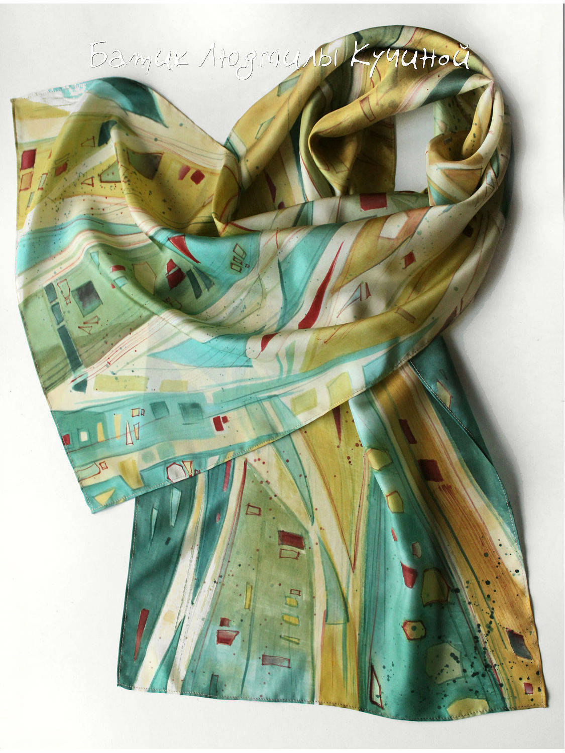 Батик шарф "Абстракция на тему. Кандинский" ок. 150*45см, натуральный шелк туаль. Импровизация.