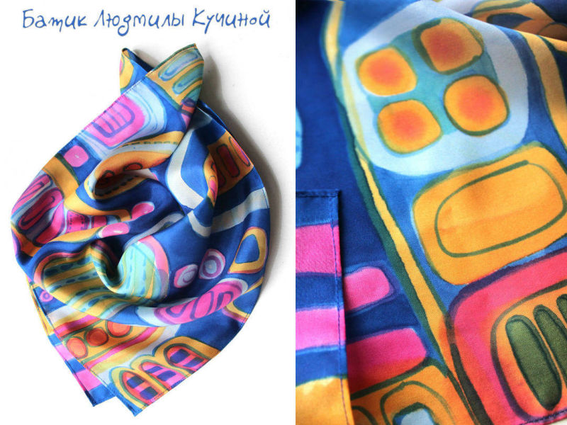 Коллекция "Абстракция и Цвет": геометрические сюжеты и шибори (техника окраски скрученного шелка).