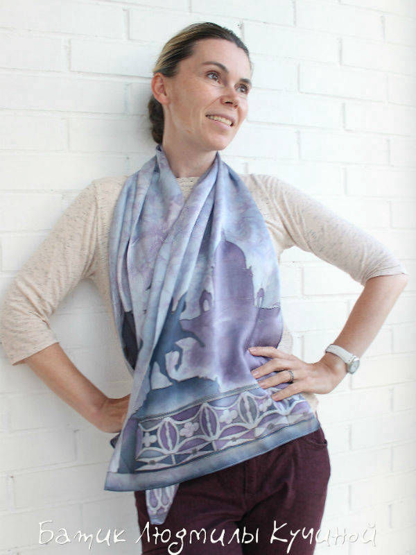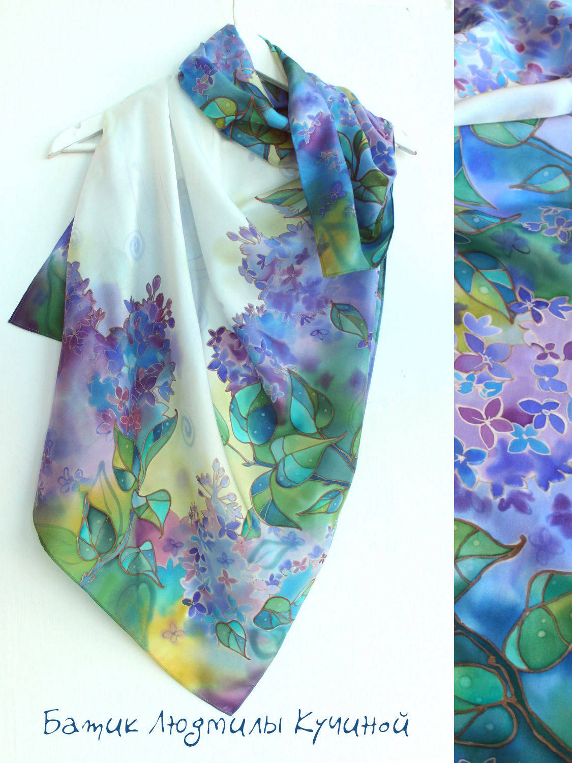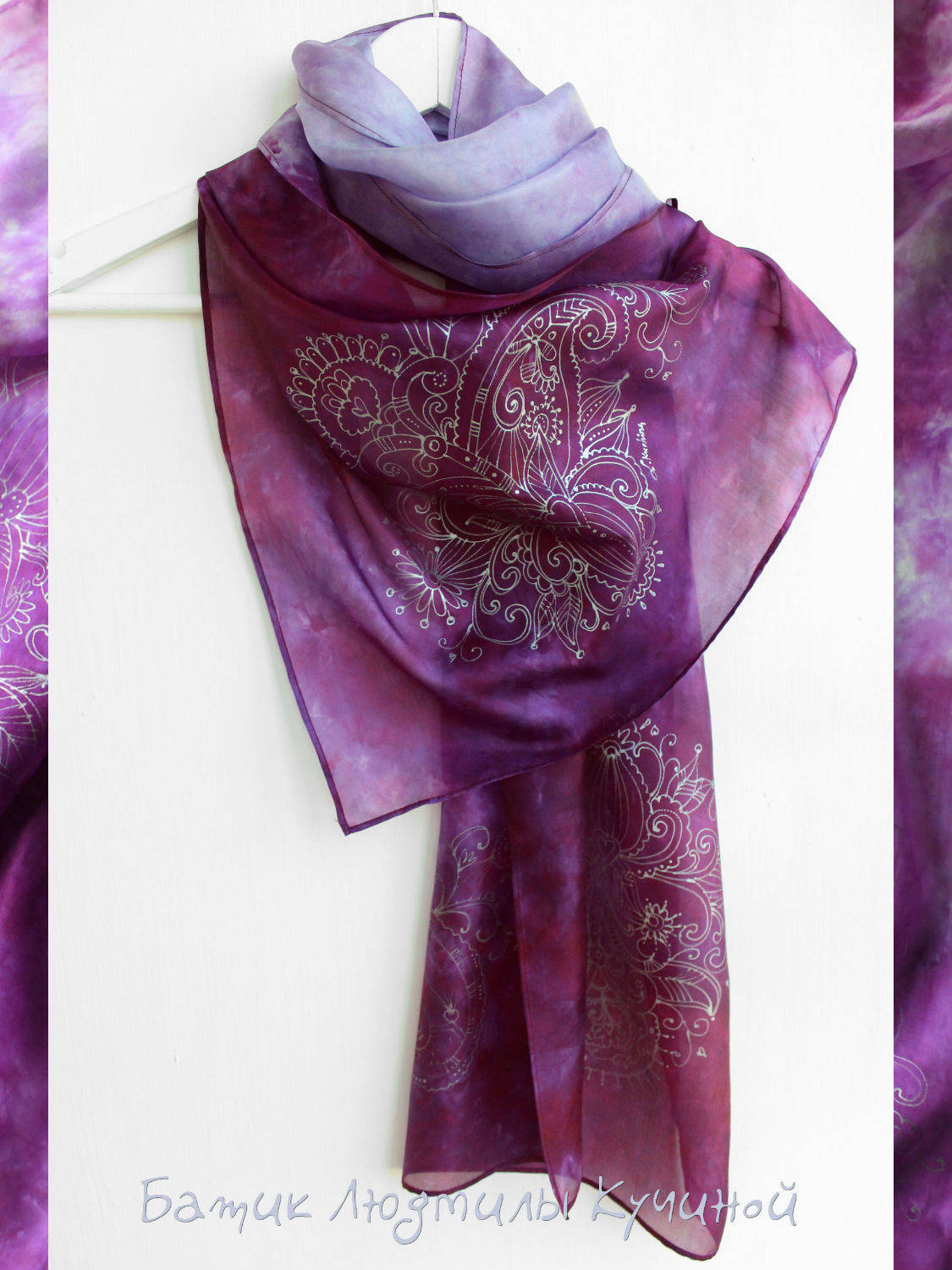 Батик шарф "Сиреневый Петербург" разные размеры, натуральный шелк туаль или крепдешин. Повтор возможен.