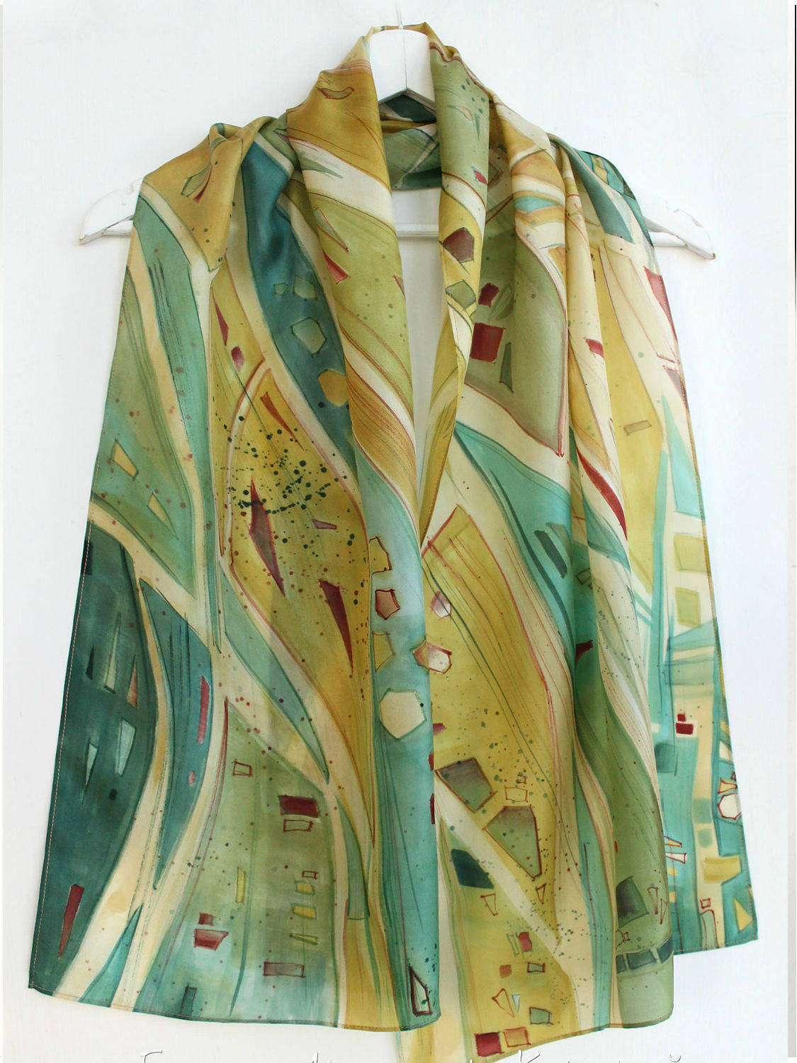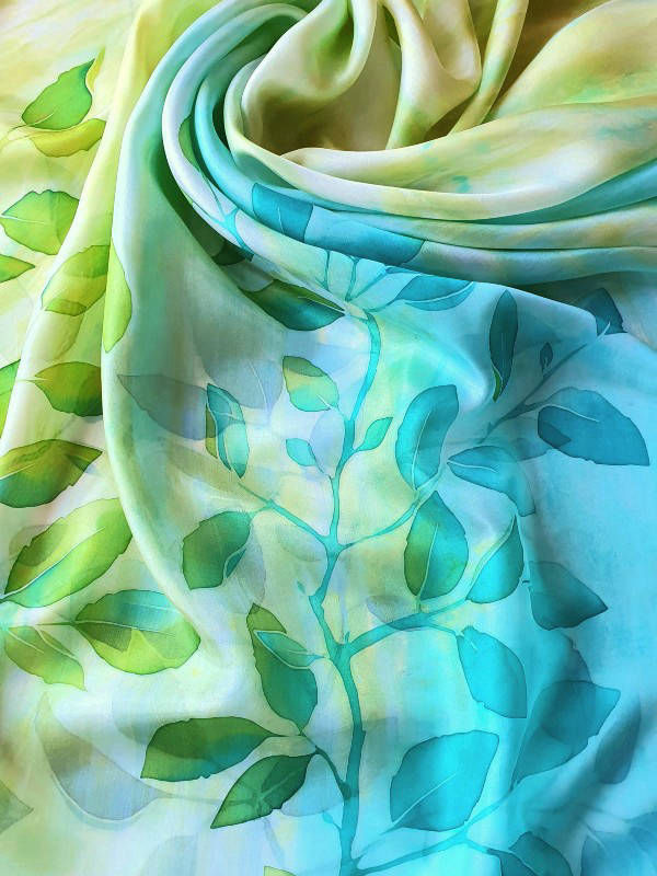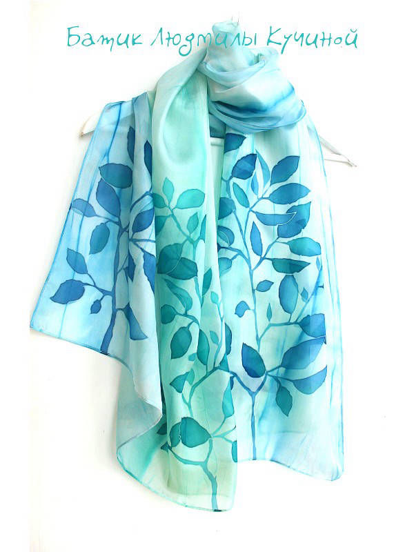 Батик шарф "Листья" разные размеры и цветовые вариации, натуральный шелк туаль и эксцельсиор. Повтор по мотивам возможен.