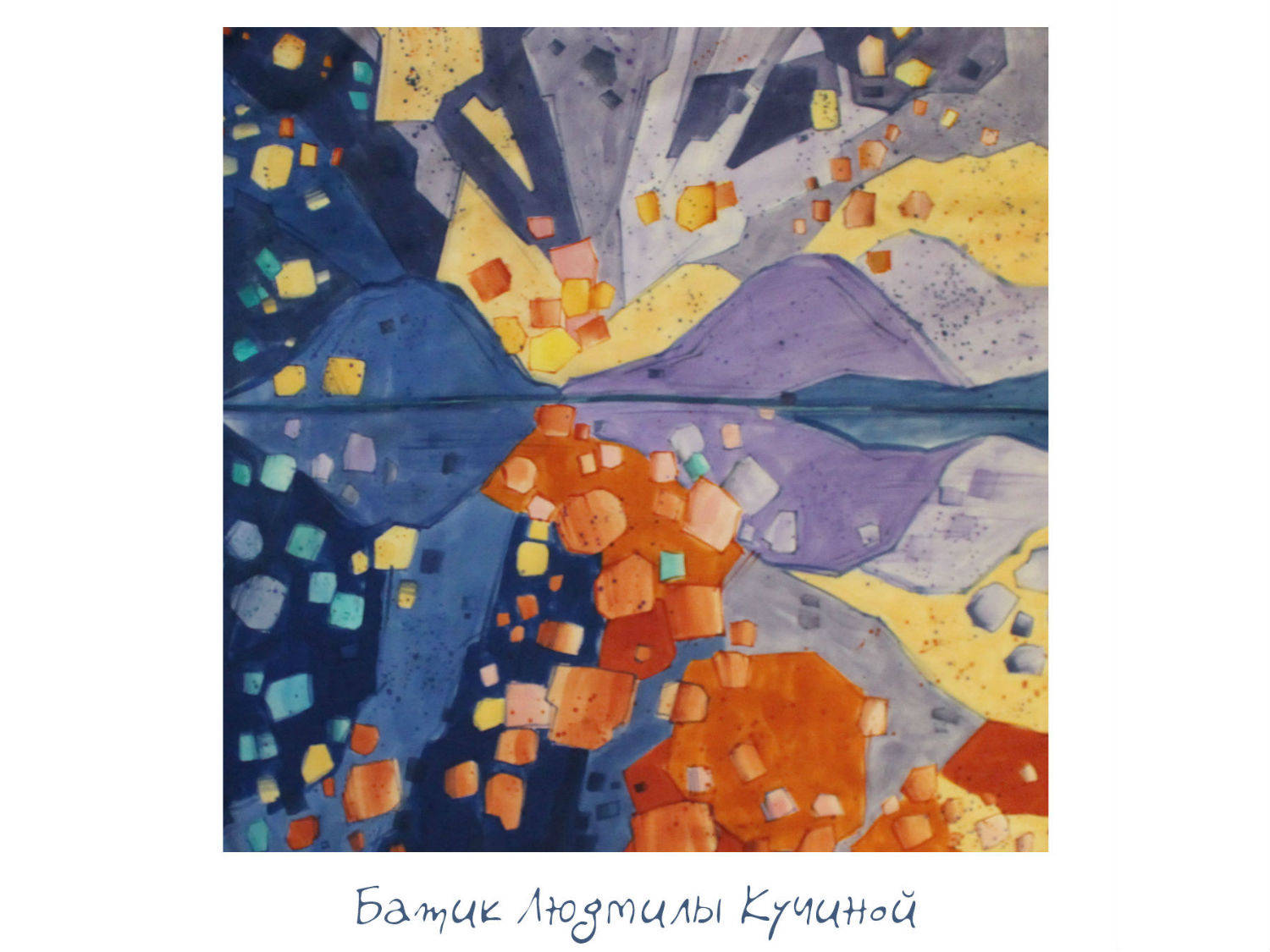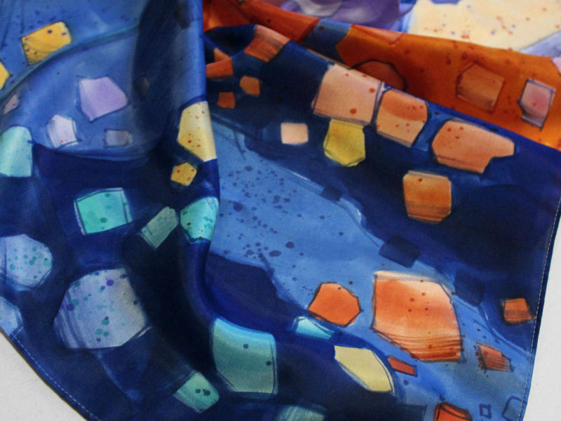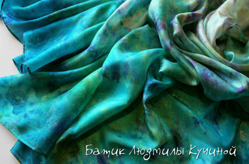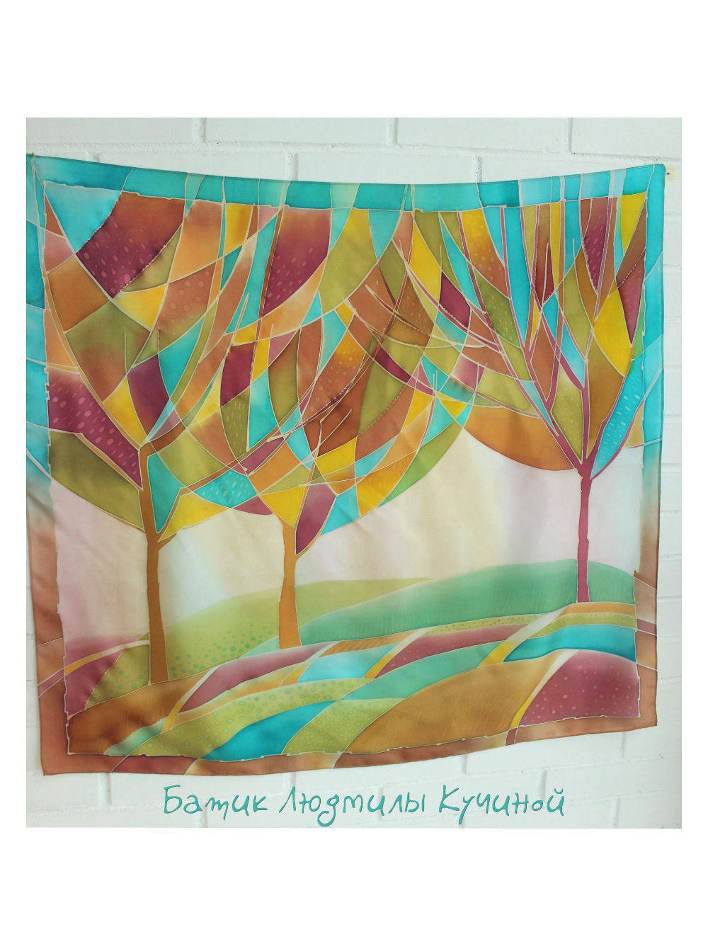 Батик платок "Абстрактный пейзаж" ок . 70*70см, натуральный шелк туаль, свободная роспись без эскиза. Повтор невозможен.