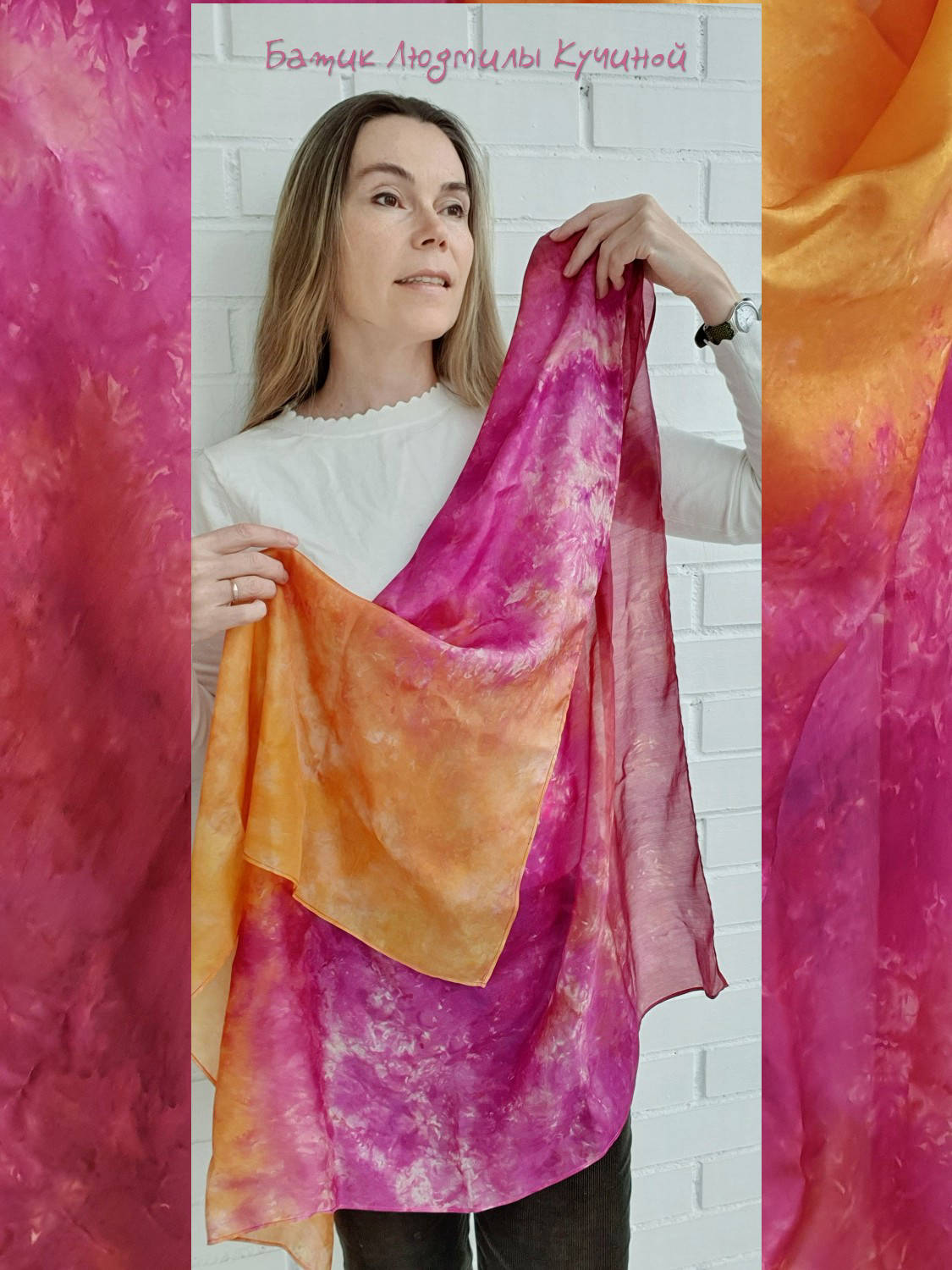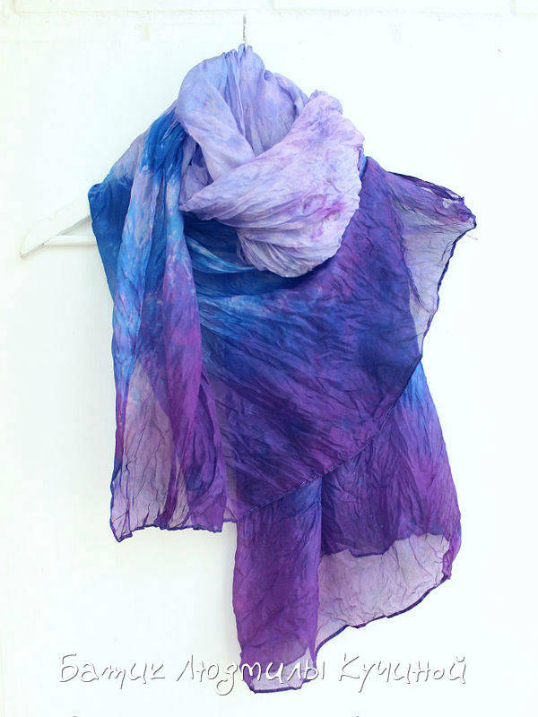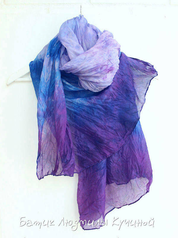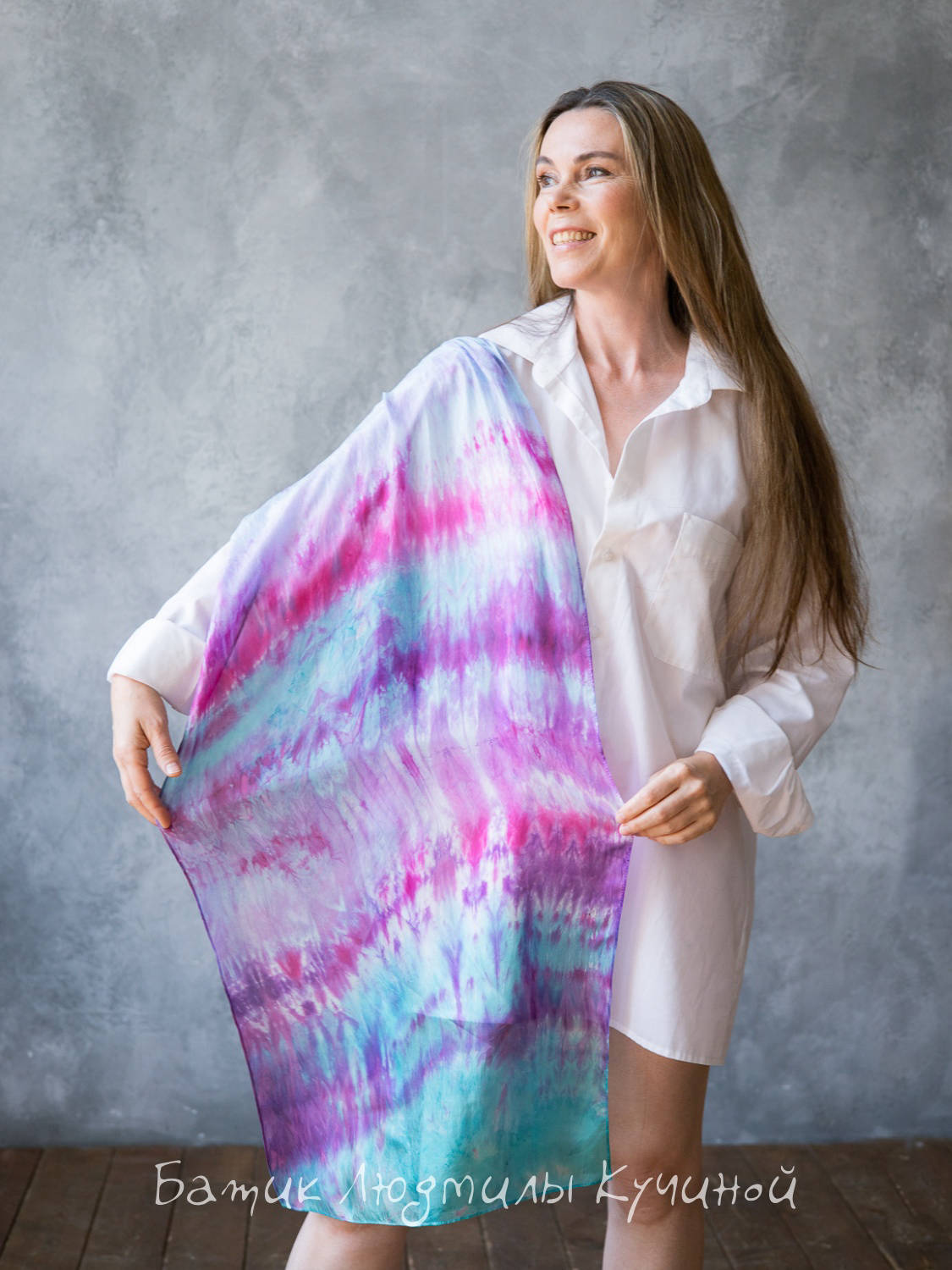 Батик шарфы-палантины, окрашенные в технике шибори 170-180*90см, тонкий шелк эксцельсиор.