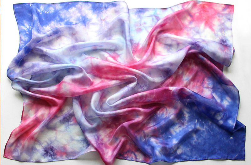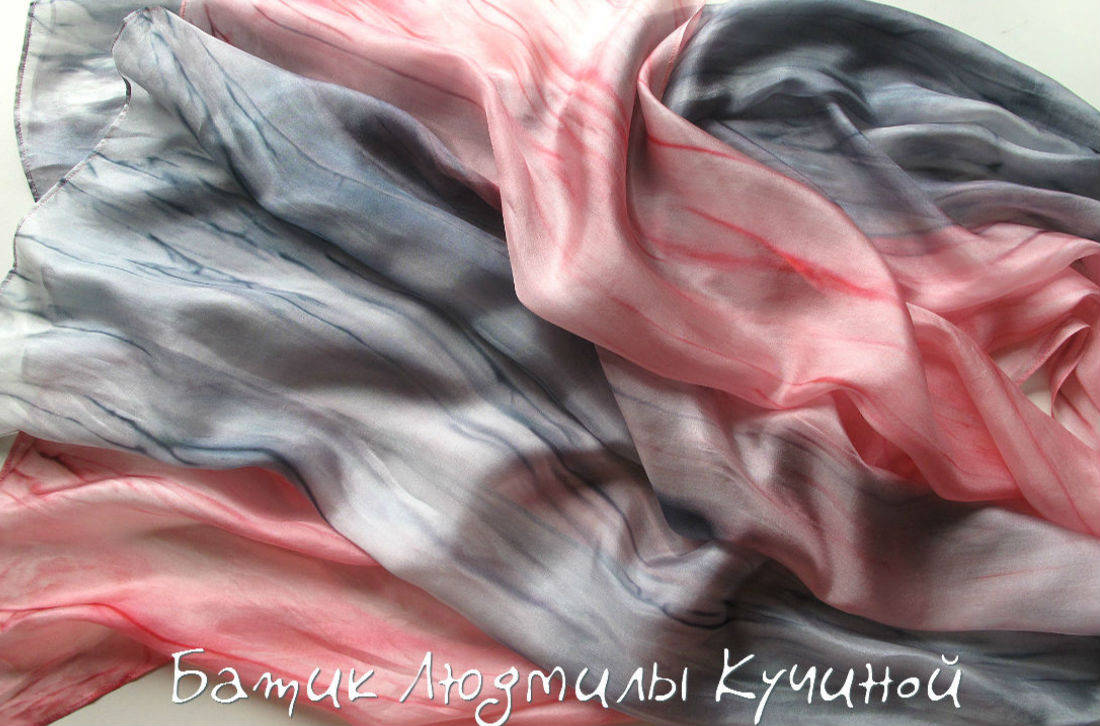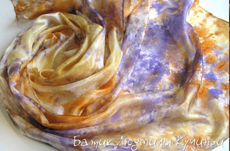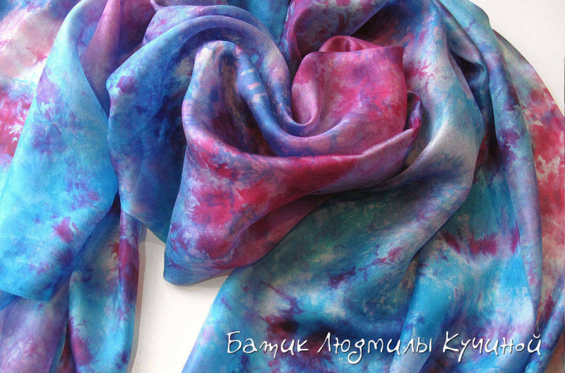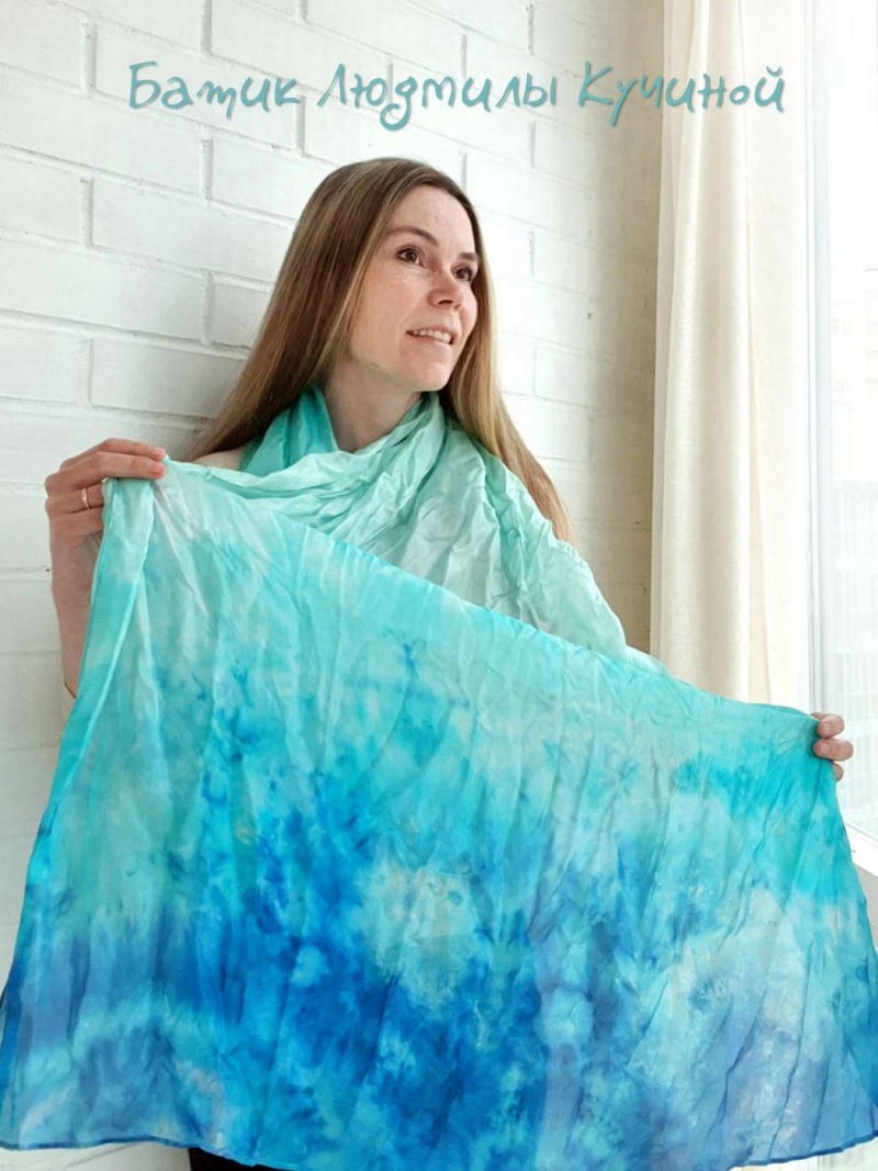 Батик шарфы-палантины, окрашенные в технике шибори 170-180*90см, тонкий шелк эксцельсиор.