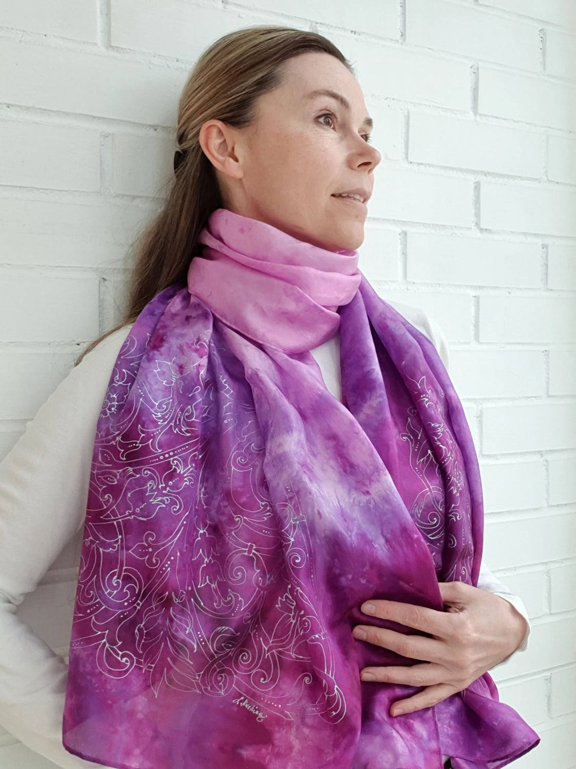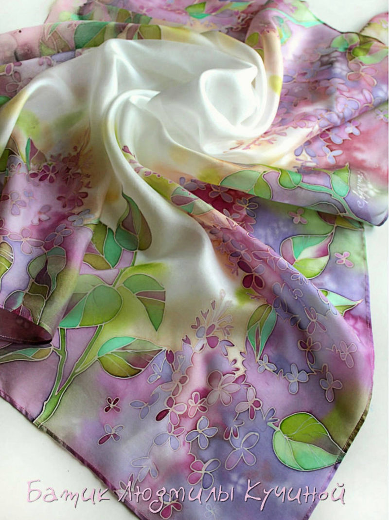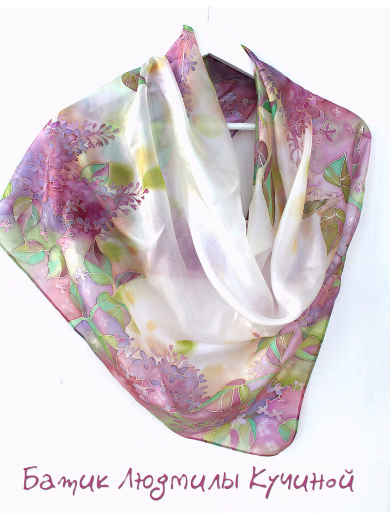 Батик платок "Сирень" фиолетовый и розовый вариант ок . 90*90см, натуральный шелк . Повтор по мотивам возможен.