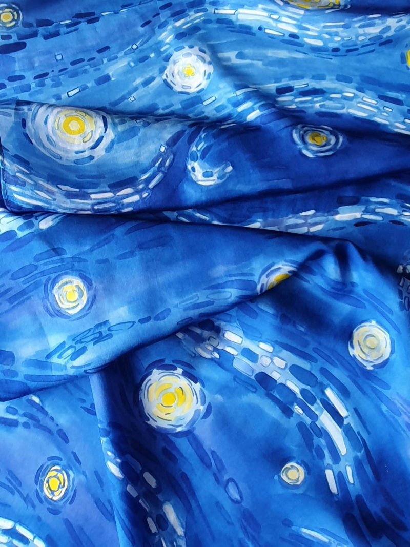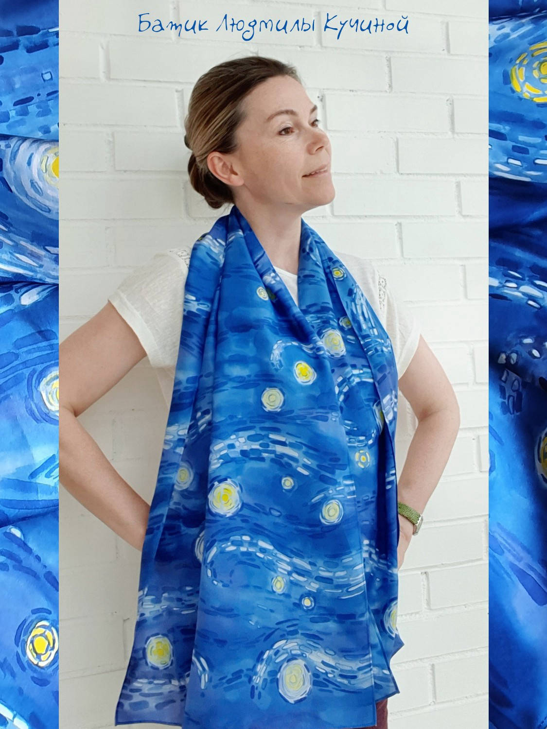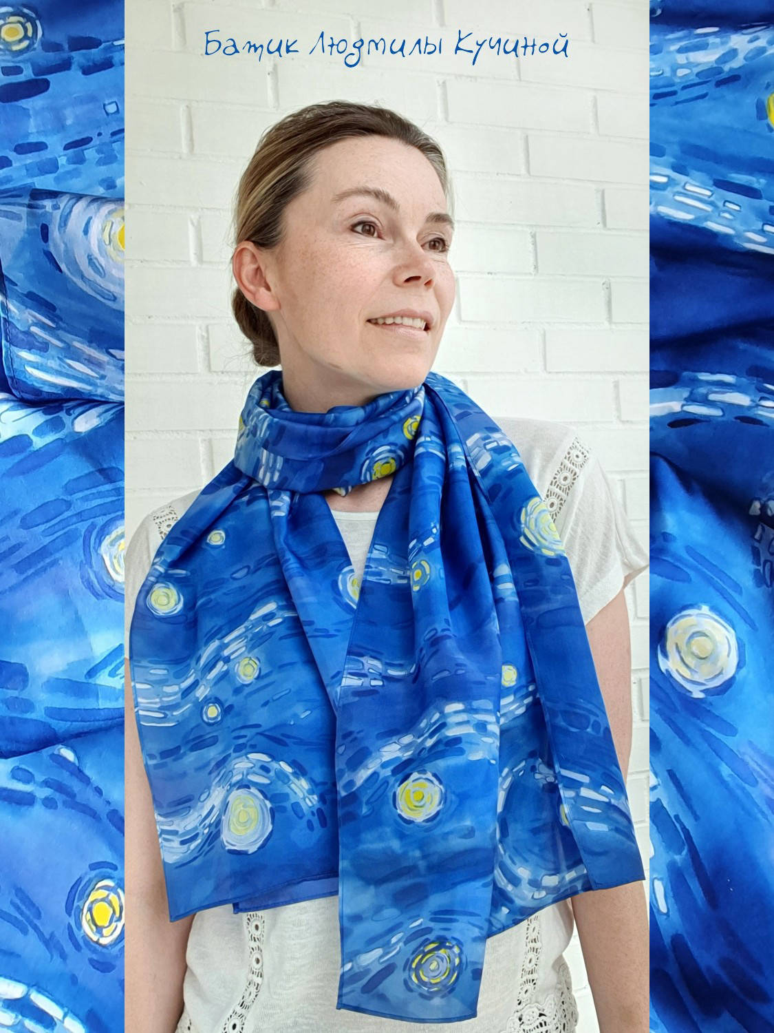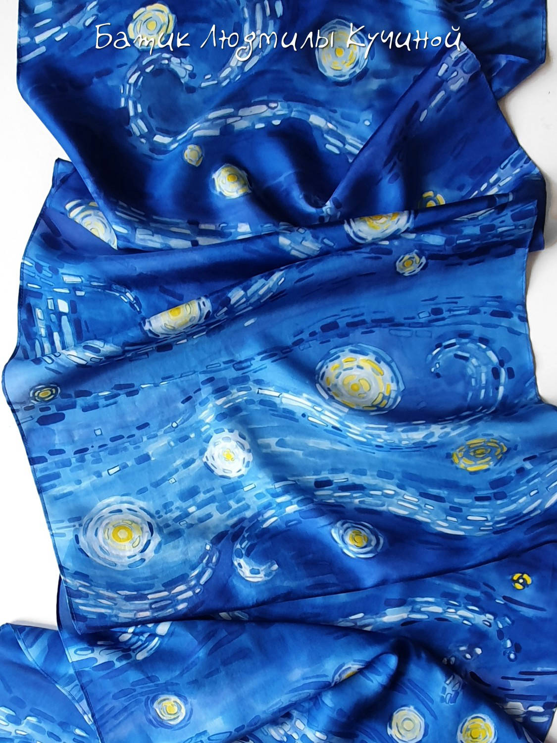 Батик платок "По мотивам Звездной ночи ван Гога" ок . 160*45см, натуральный шелк туаль. Повтор возможен .