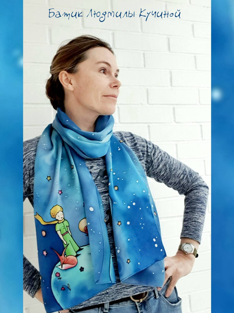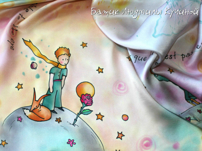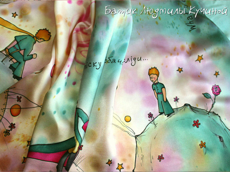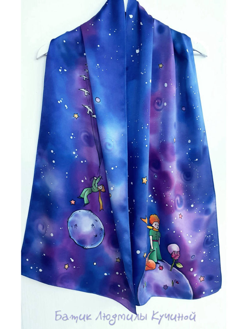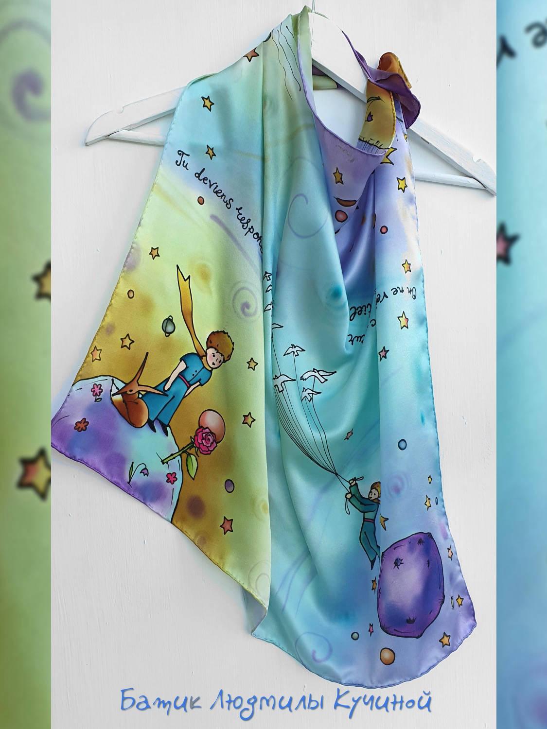 Батик шарф "Маленький Принц" , натуральный шелк атлас, разные цветовые вариации. Повтор возможен "по мотивам" в разных размерах.