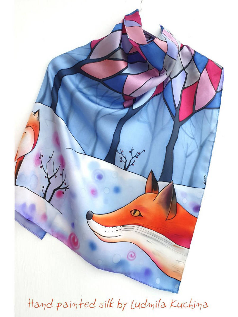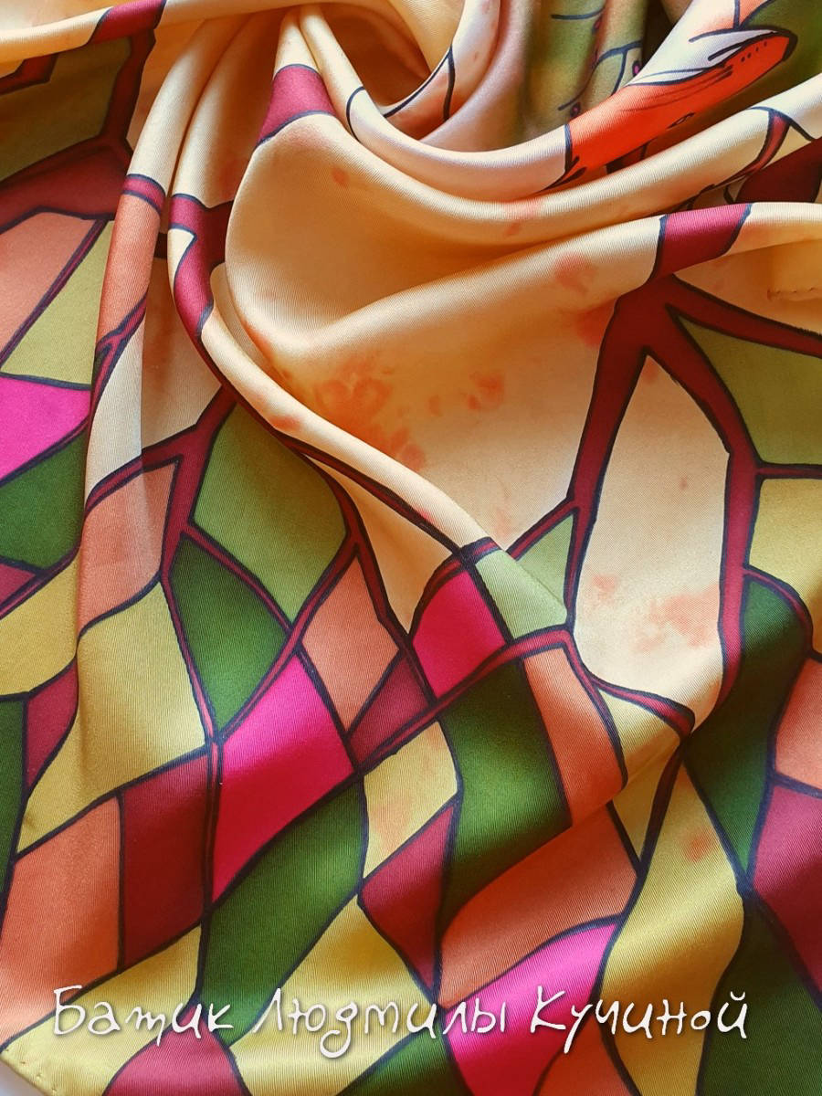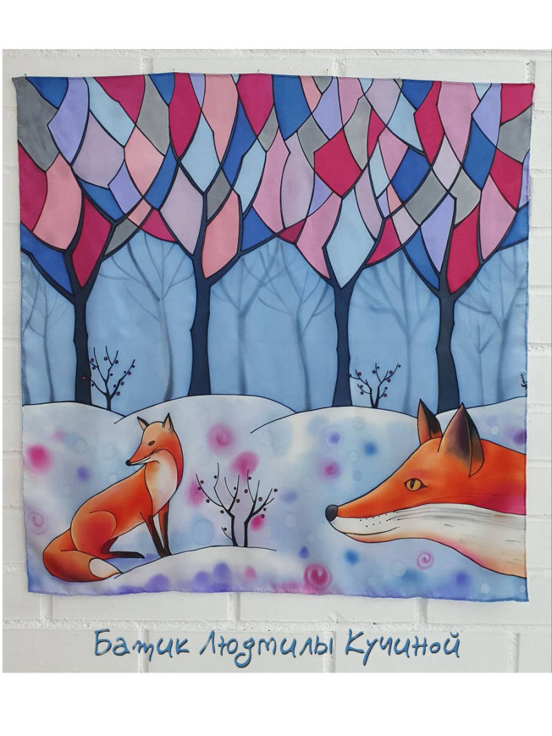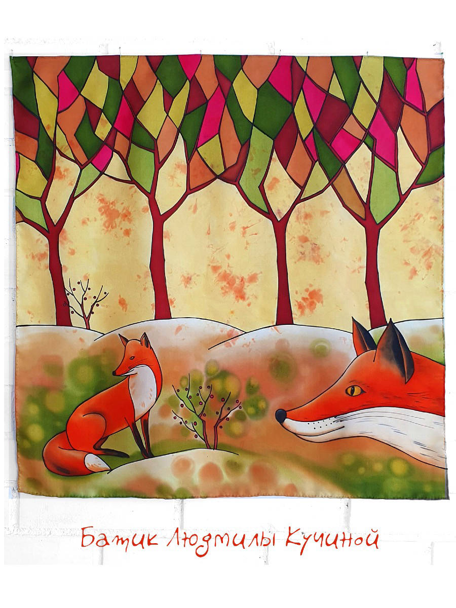 Батик шарф "Лисы" разные размеры, натуральный шелк атлас и саржа. Повтор возможен.