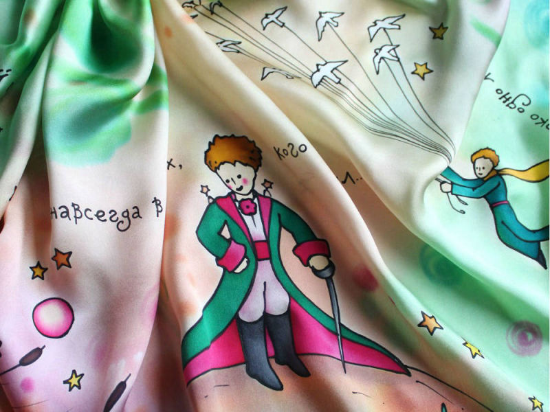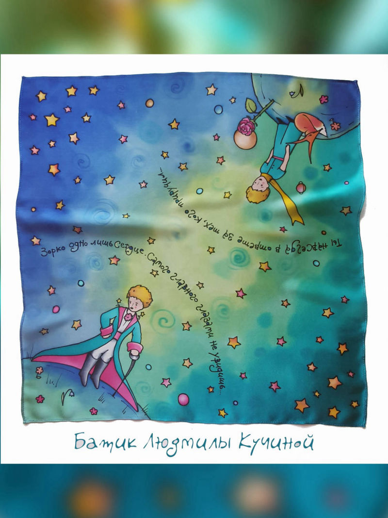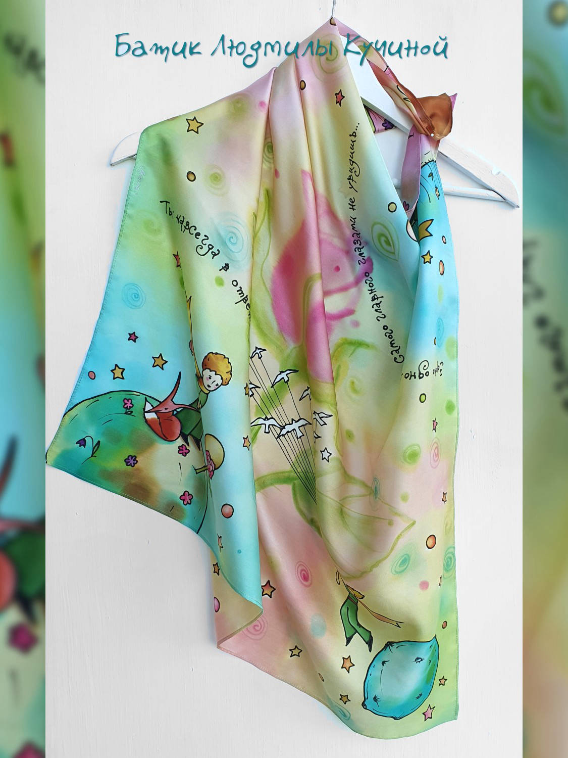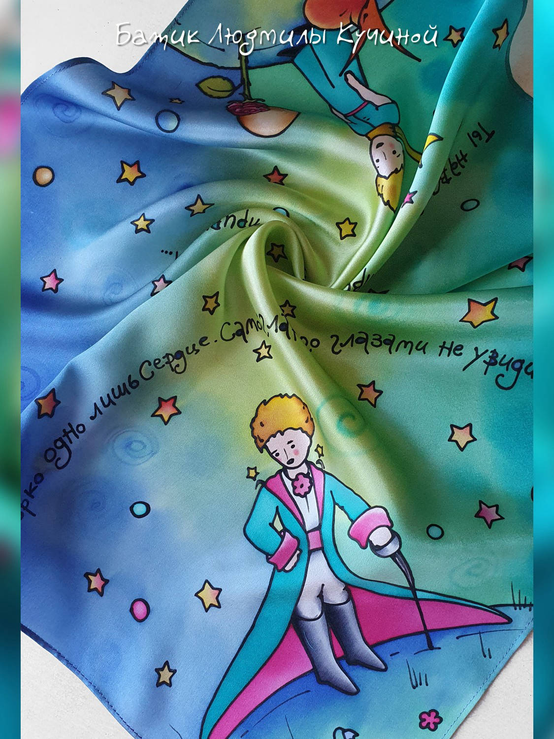 Батик платок "Маленький Принц" разные размеры (от 50*50 до 90*90 см), натуральный шелк атлас. Разные цветовые вариации. Ручная или машинная подгибка края. Повтор по мотивам возможен.