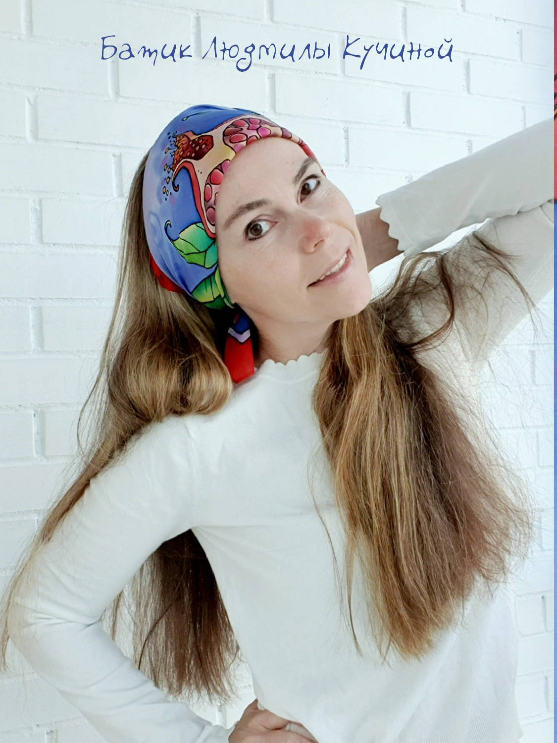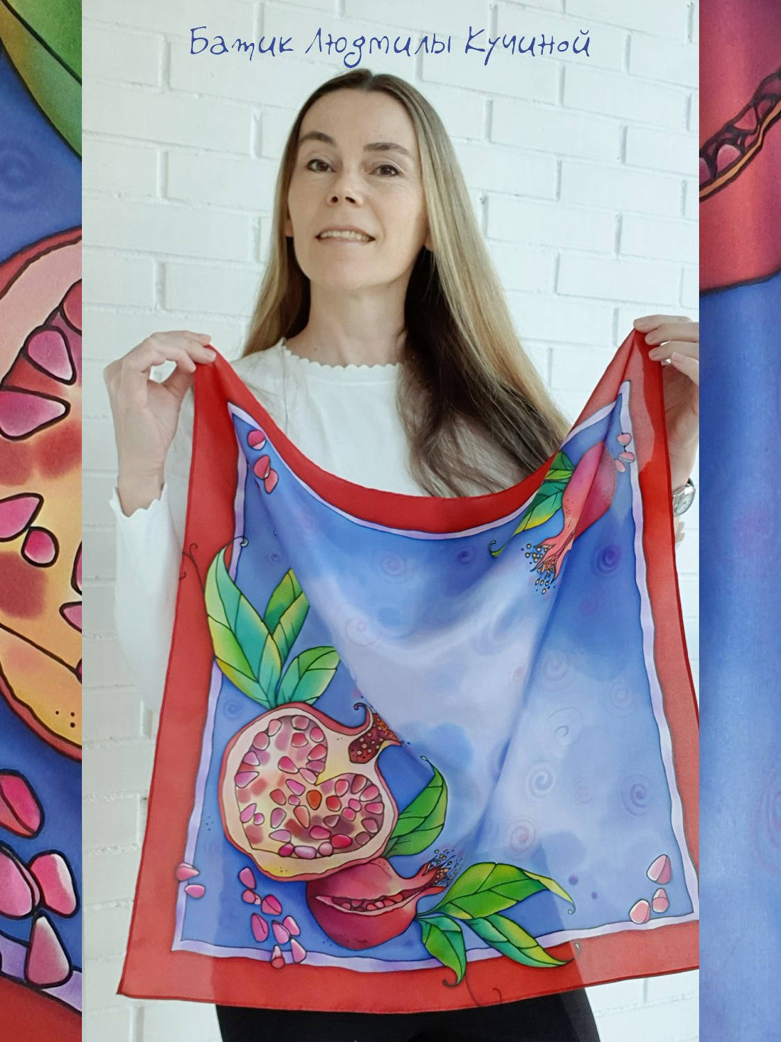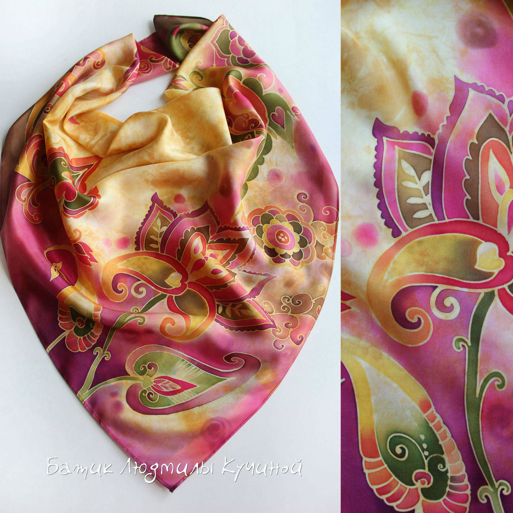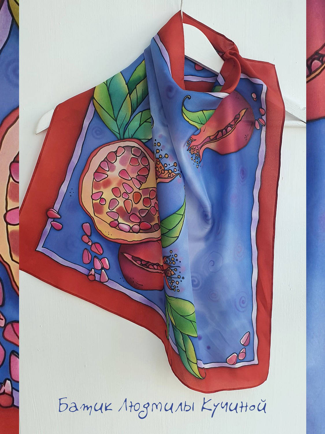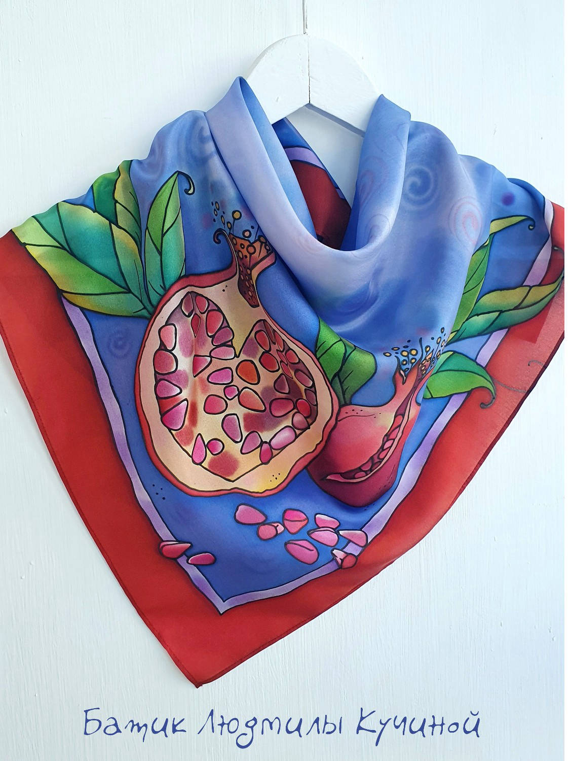 Батик платок "Гранаты" ок 55х55 см, натуральный шелк туаль. Повтор возможен.