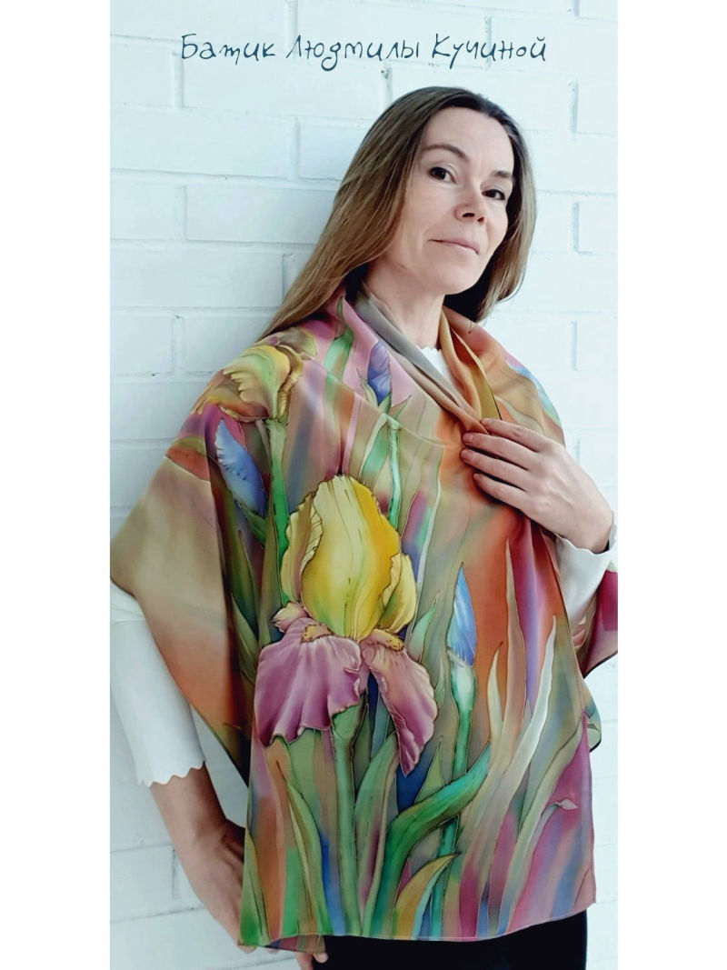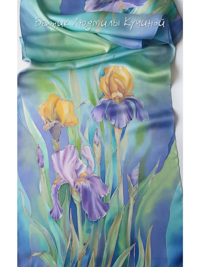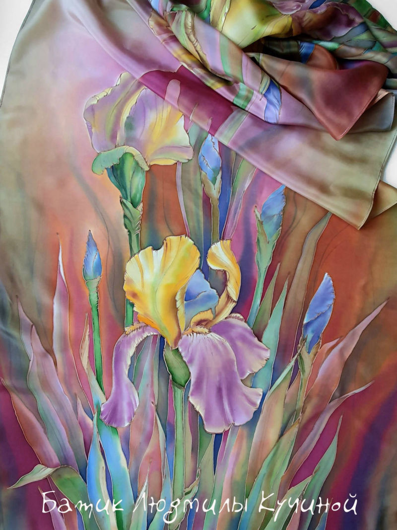 Батик шарф "Ирисы" , натуральный шелк. Повтор возможен по мотивам.