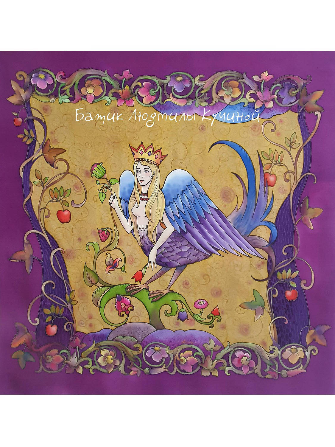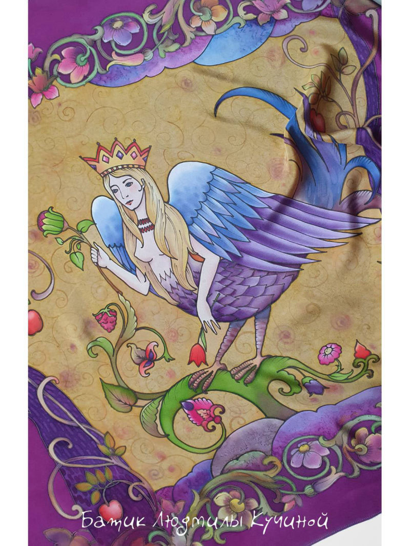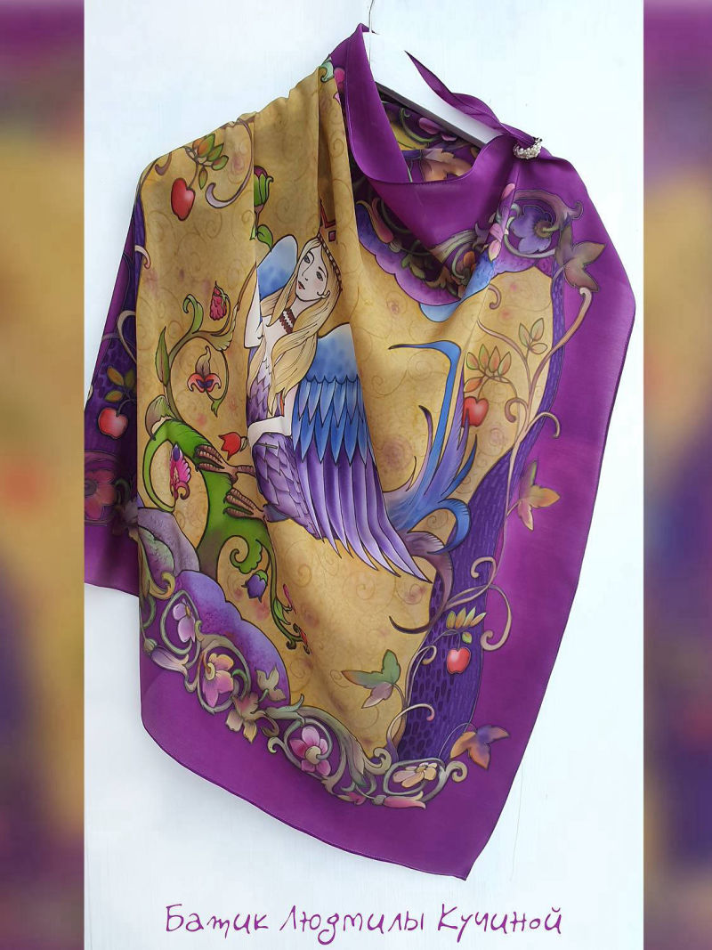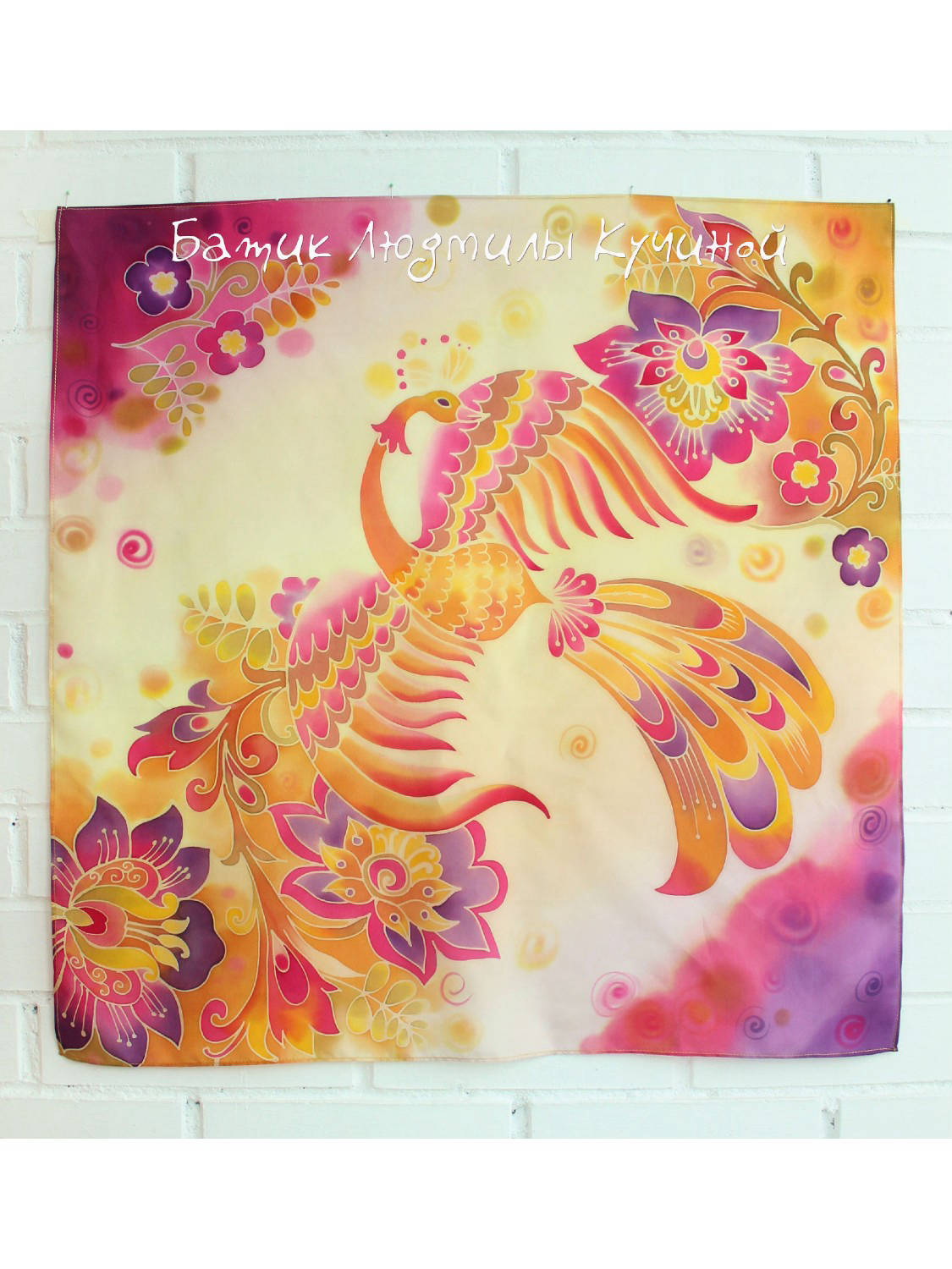 Батик платок "Сказочная птица" ок 78Х78 см, натуральный шелк крепдешин.