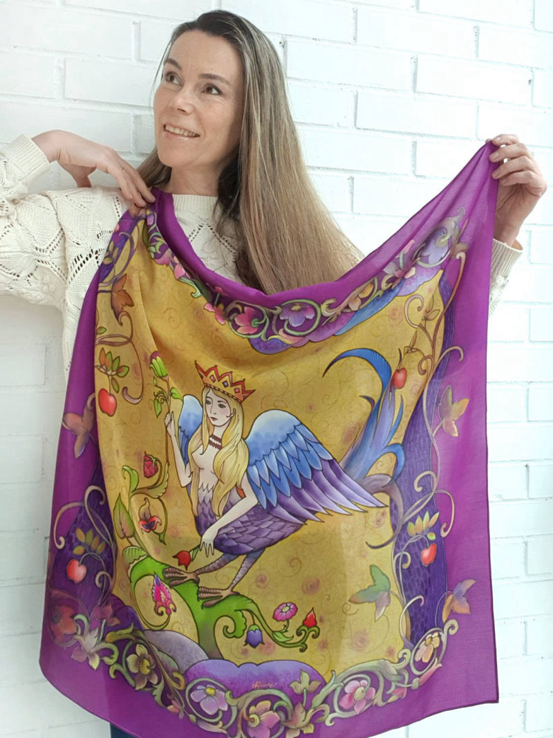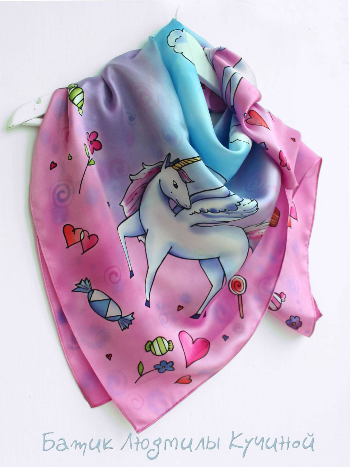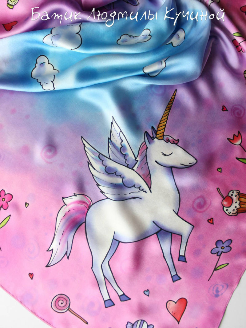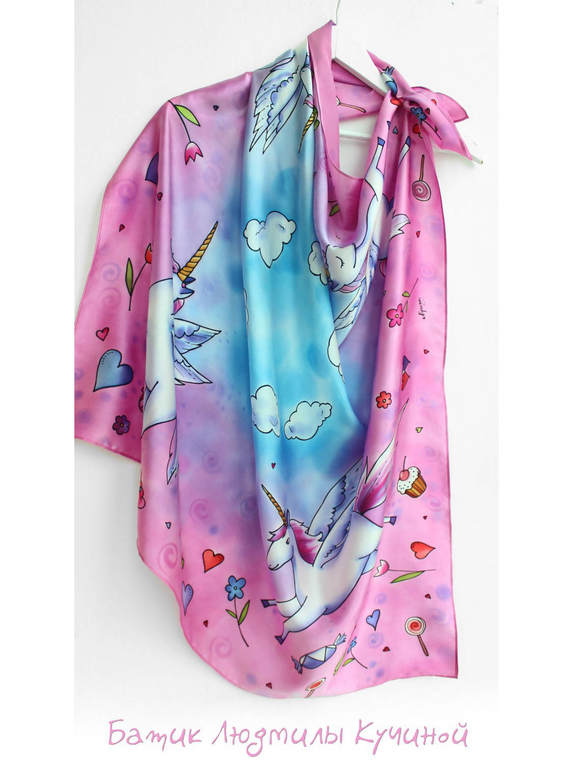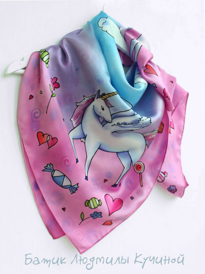 Батик платок "Единороги" , натуральный шелк туаль. Повтор возможен по мотивам.