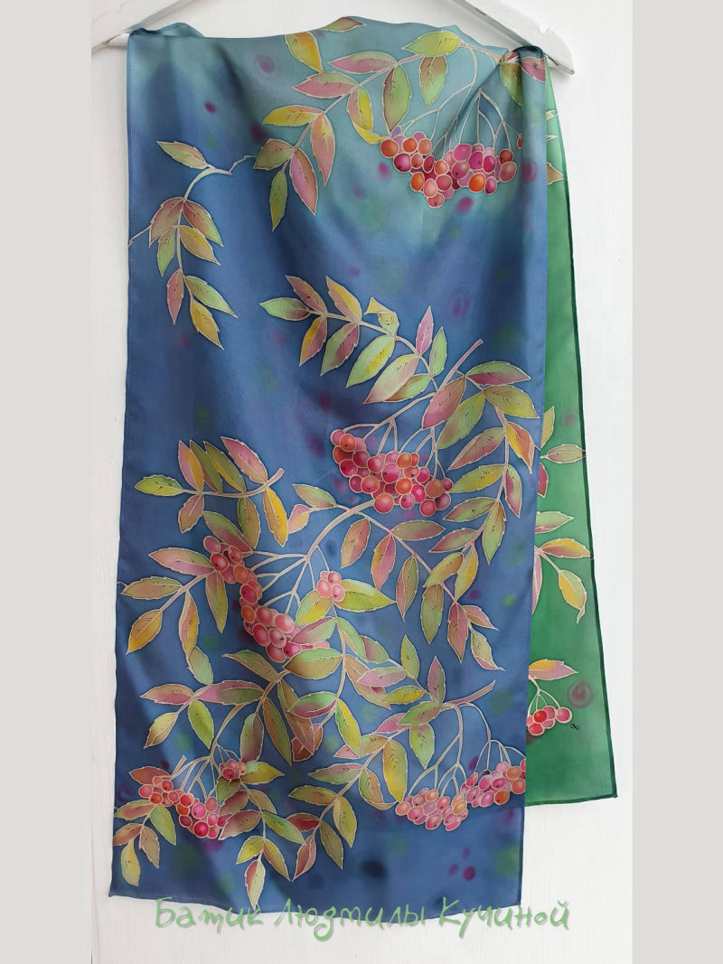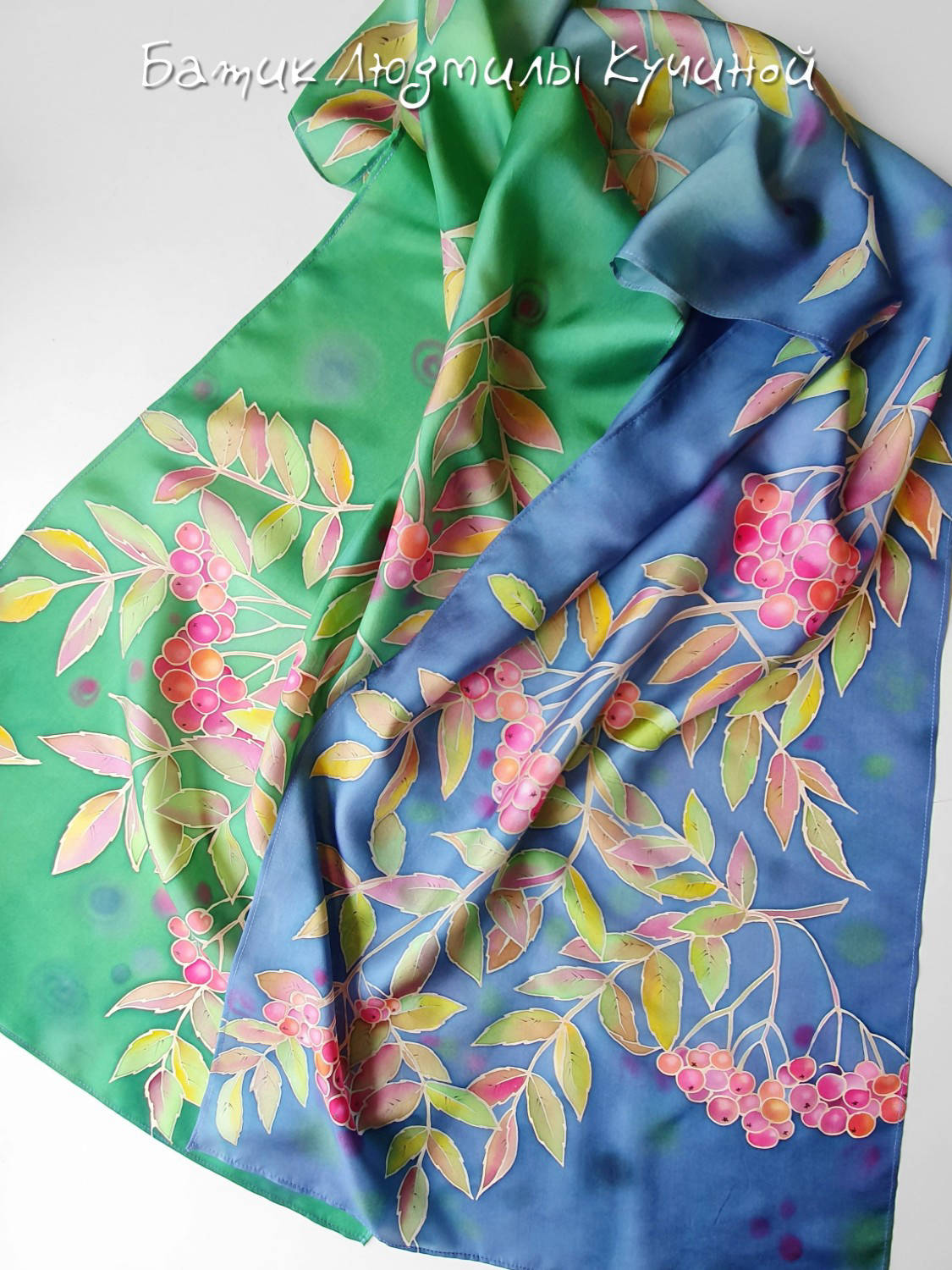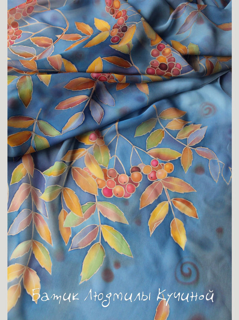 Батик шарф "Рябина" разные размеры, разные цветовые гаммы, натуральный шелк туаль или крепдешин. Повтор возможен по мотивам.