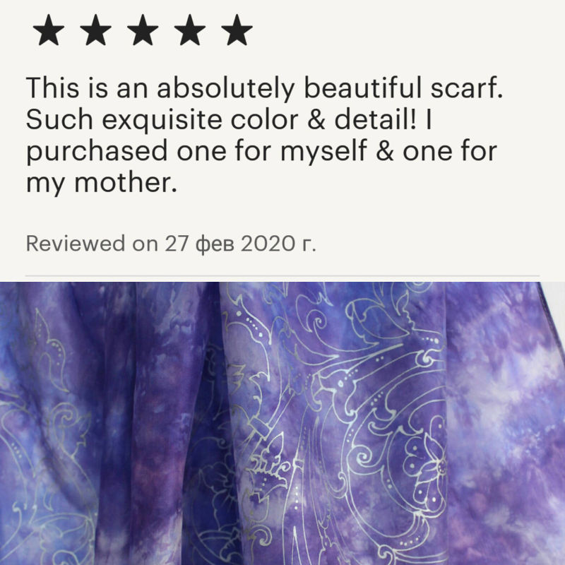 Обалденный платок! Покупала в подарок и не прогадала! Качество отличное! Все пришло аккуратно упаковано в подарочную упаковку! Спасибо огромное за такую красоту!!!