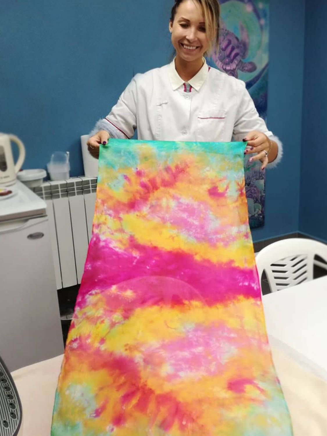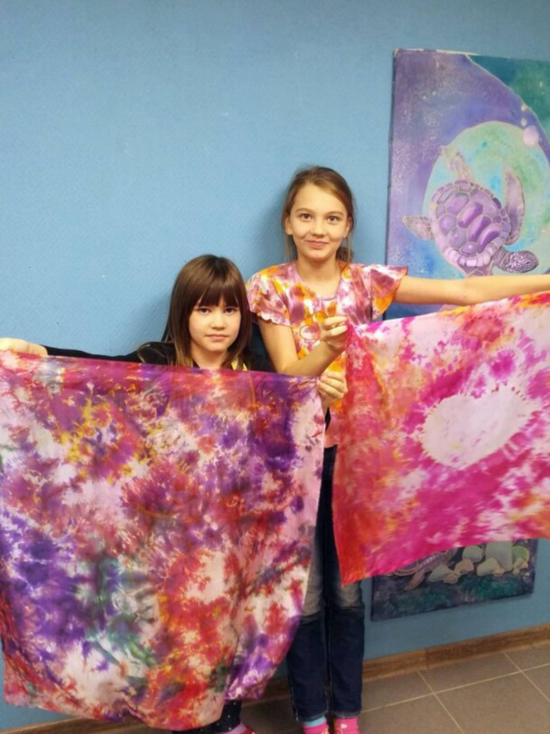 ШИБОРИ Еще одна быстрая и эффектная техника для новичков , и даже детей. Очень красиво получаются палантины и шарфы без рисунка - тут результат всегда непредсказуем , с эффектом "Вау" :)